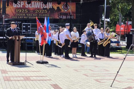 Słoneczna pogoda towarzyszyła obchodom 100-lecia OSP w Sławęcinie. W sobotnie przedpołudnie gospodarze wraz z druhami z sąsiednich jednostek, zaproszonymi gośćmi i mieszkańcami przemaszerowali spod remizy do miejscowej kaplicy na uroczystą mszę. Zaraz po niej zgromadzeni wrócili na plac przy remizie na dalszą część uroczystości. Wśród gości byli m.in.: poseł Anna Cicholska, zastępca prezesa ARiMR Marek Budzich, starosta Jerzy Rzymowski, przewodniczący Rady Powiatu Zygmunt Liszewski, burmistrz Andrzej Sztybor oraz były burmistrz Bieżunia Andrzej Szymański.