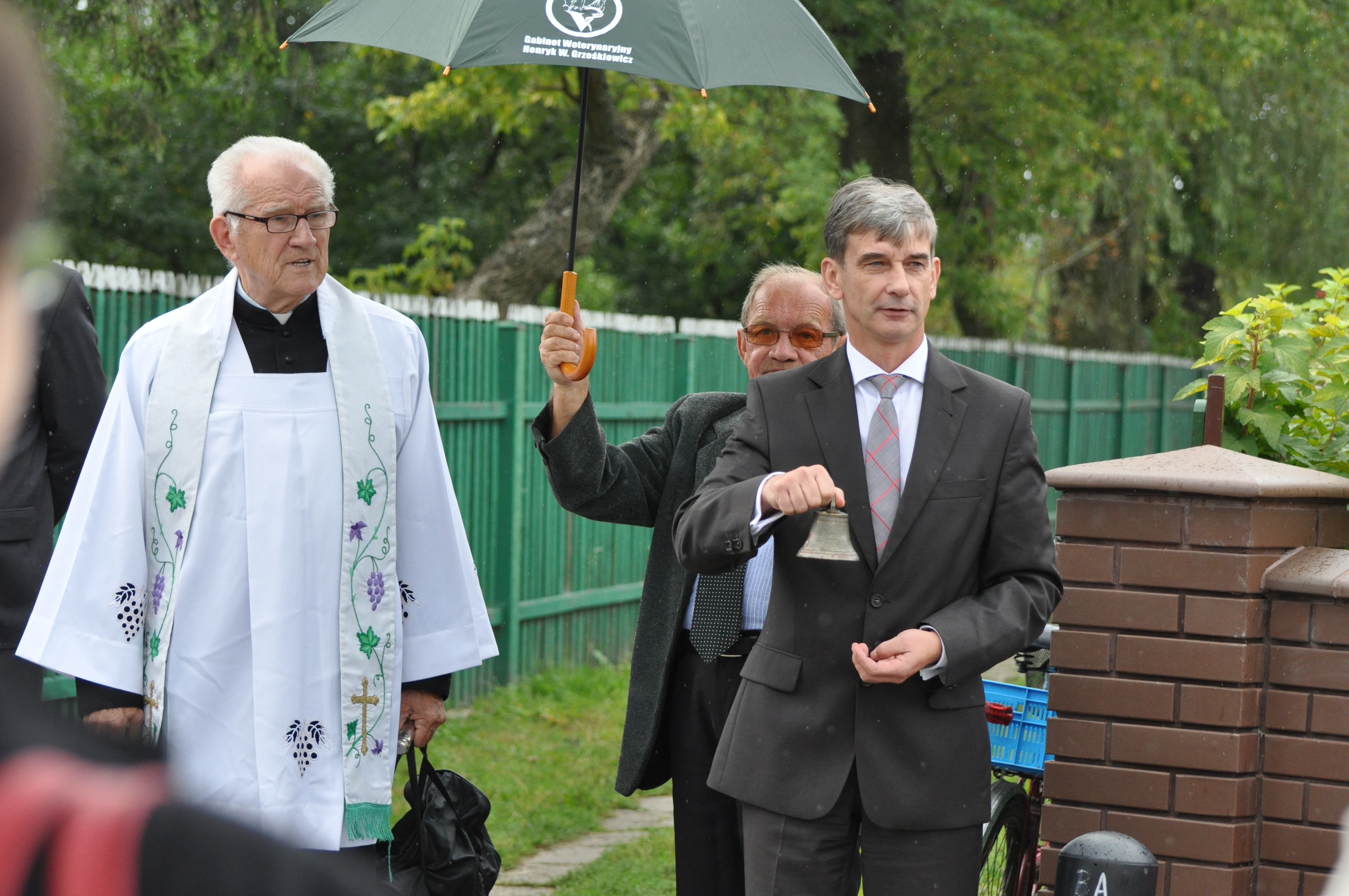 Uroczystość odsłonięcia pamiątkowej tablicy upamiętniającej miejsce pierwszej szkoły w Bieżuniu odbyła się w poniedziałek, 3 września. Data ta została wybrana nieprzypadkowo. Tego dnia w tym roku przypada rozpoczęcie roku szkolnego. W uroczystości uczestniczyły władze lokalne, kościelne, a także byli uczniowie i nauczyciele tej placówki. Uroczystość otworzył burmistrz Bieżunia Andrzej Szymański, który wraz z fundatorami pamiątkowej tablicy Henrykiem i Reginą Grześkiewiczami dokonał odsłonięcia tablicy. Jerzy Piotrowski przedstawił rys historyczny bieżuńskiej placówki począwszy od 1806 roku, kiedy została wybudowana aż do czasów obecnych. Po krótkiej prelekcji, poświęceniu tablicy i krótkich przemówieniach wszyscy udali się na poczęstunek.