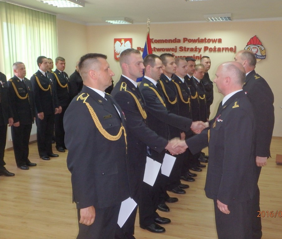 Komendant Główny Państwowej Straży Pożarnej za wzorowe wykonywanie obowiązków służbowych z okazji Dnia Strażaka 2016 przyznał ogniomistrzowi Mariuszowi Sokołowskiemu nagrodę pieniężną.