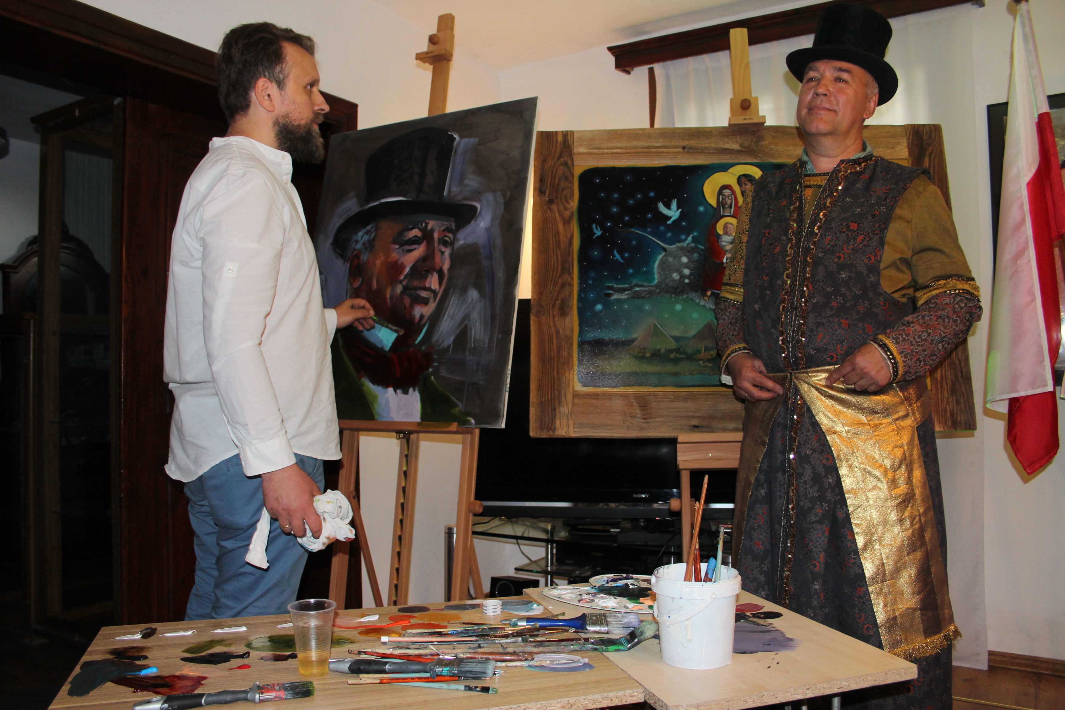 -Witam waszmość panie i waszmość panów na Nocy Muzeów w Bieżuniu- po szlachecku powitał gości kierownik Jerzy Piotrowski. – W tym roku oprócz zwiedzania wystaw, proponujemy państwu niezwykły koncert- dodał Piotrowski. Zwiedzający oprócz obejrzenia wystaw stałych oraz tymczasowej wystawy peruwiańskiej mieli okazję wysłuchać recitalu Pawła Górskiego pt. ”Droga”. Muzyk mieszka w Piasecznie, gdzie na co dzień pracuje w Domu Kultury. Jego pasją jest muzyka, niedawno wydał płytę z własnymi utworami. Dodatkową atrakcją podczas koncertu, był happening artystyczny. W trakcie występu Pawła Górskiego malarz Adam Kołakowski namalował portret, który dołączy do eksponatów bieżuńskiej placówki. Wizyta tych dwóch artystów nie była przypadkowa. Adam Kołakowski jest autorem ilustracji znajdujących się na płycie Pawła Górskiego. Po prawie godzinnym występie muzycznym goście zobaczyli co, a właściwie kogo przedstawia obraz Kołakowskiego. Malarz wykonał portret kierownika muzeum Jerzego Piotrowskiego, na którym ubrany jest w epokowy frak, a na głowie ma gustowny cylinder. Po zakończeniu części artystycznej goście zostali zaproszeni na poczęstunek. Tradycyjnie już na stole znalazły się pyszne bieżuńskie specjały m.in. babka ziemniaczana i smalec.