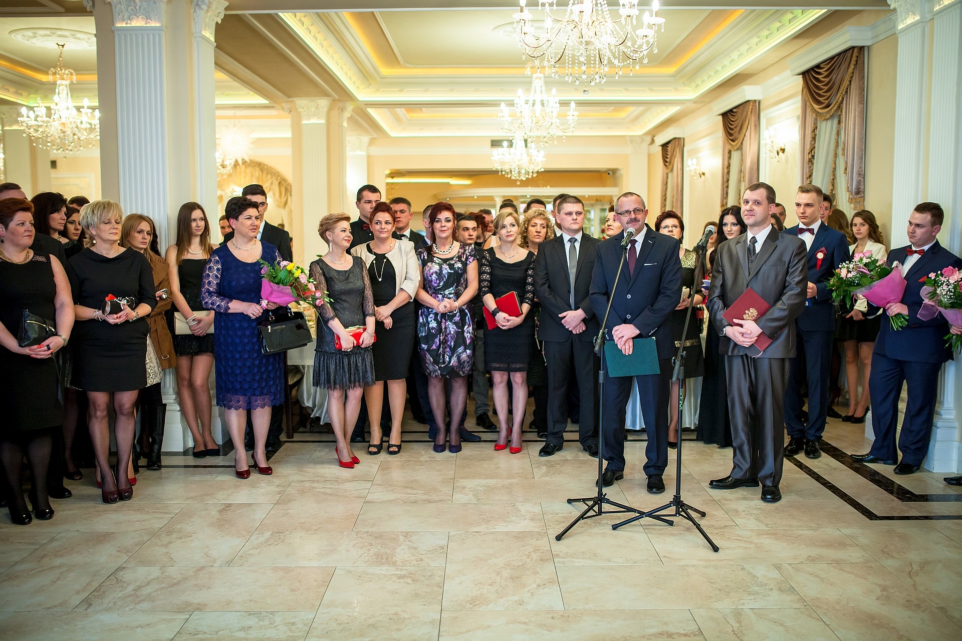 IV TH z wychowawczynią Magdaleną Radzimską. Oficjalna część rozpoczęła się od przemówień i podziękowań. Głos zabrali nauczyciele, goście, rodzice i uczniowie. Spotkanie otworzył dyrektor szkoły Wojciech Smoliński. Przywitał uczniów i zaproszonych gości. Wśród nich starostę Jerzego Rzymowskiego, ks. proboszcza Kazimierza Kowalskiego i rodziców. Przemawiali również uczniowie i rodzice od których nauczyciele otrzymali róże. Uczniowie wręczyli wychowawcom bukiety kwiatów. Wszyscy przemawiający byli zgodni co do tego, że jest czas na zabawę i należy go jak najlepiej wykorzystać. Ważna jest też nauka. Wiosną przecież na uczniów czeka najważniejszy egzamin w życiu. Po przemówieniach uczniowie zatańczyli tradycyjnego poloneza. Młodzież do tańca była znakomicie przygotowana. Zatańczyli równo a ich piękne stroje sprawiły, że trudno było oderwać od nich wzrok. Podobało się chyba wszystkim o czym mogą świadczyć gromkie brawa. Po polonezie można było zasiąść do stołów. Czas na zabawę był do białego rana.