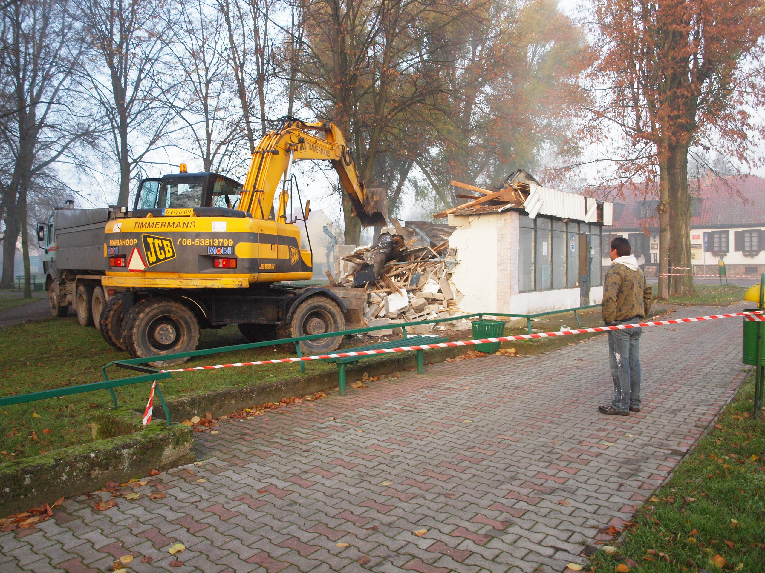 W październiku przyjechała koparka i budynek sprzątnęła. Pozostały po nim tylko fundamenty i wylewki.