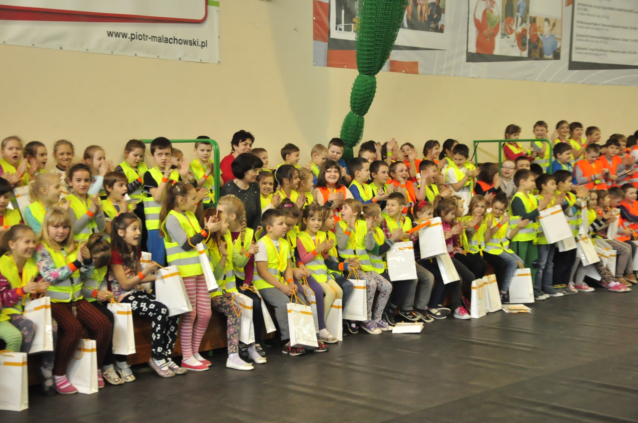 Po lekcji o bezpieczeństwie wygłosznoej przez policjantów, wszystkim uczniom klas I-VI Szkoły Podstwowej w Bieżuniu rozdaliśmy paczki, w których znajdowały się kamizelka odblaskowa, kolorowe smycze z nazwą naszej akcji, odblaski na rękę oraz dwa rodzaje odblasków, które można przyczepić do plecaka.
