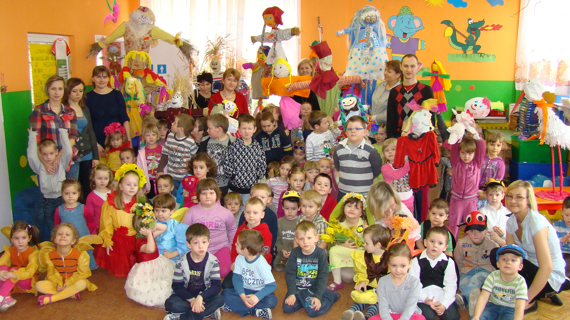 – Albo się topi albo się pali – dodaje z boku Igor lat 7. – A mnie z zielonymi listkami, słoneczkiem, końcem zimy – podsumowuje Zuzia lat 6, prezentując wykonaną razem z tatą Marzannę. A było co oglądać – kilkanaście różnych Marzann prezentowało się pod ścianą. Do konkursu przygotowano Marzanny wykonane przez poszczególne grupy wiekowe. Komisja w składzie Małgorzata Kraśniewska, Paulina Wagner i autor atrykułu miała trudny wybór. Dwa pierwsze miejsca przypadły grupie 3-4 – latków Ewy Retajczyk i grupie pięciolatków Urszuli Rybickiej, a miejsca drugie grupie pięcio- i sześciolatków. Jeszcze tylko grupowe zdjęcie z wykonanymi Marzannami i machaniem rączek oraz chóralnym żegnaj Marzanno… żegnaj Marzanno przedszkolaki przystąpiły do słodkiego poczęstunku. Program został przygotowany i poprowadzony przez Ewę Retajczyk, Magdę Konpę i Ewę Kazimierczak.