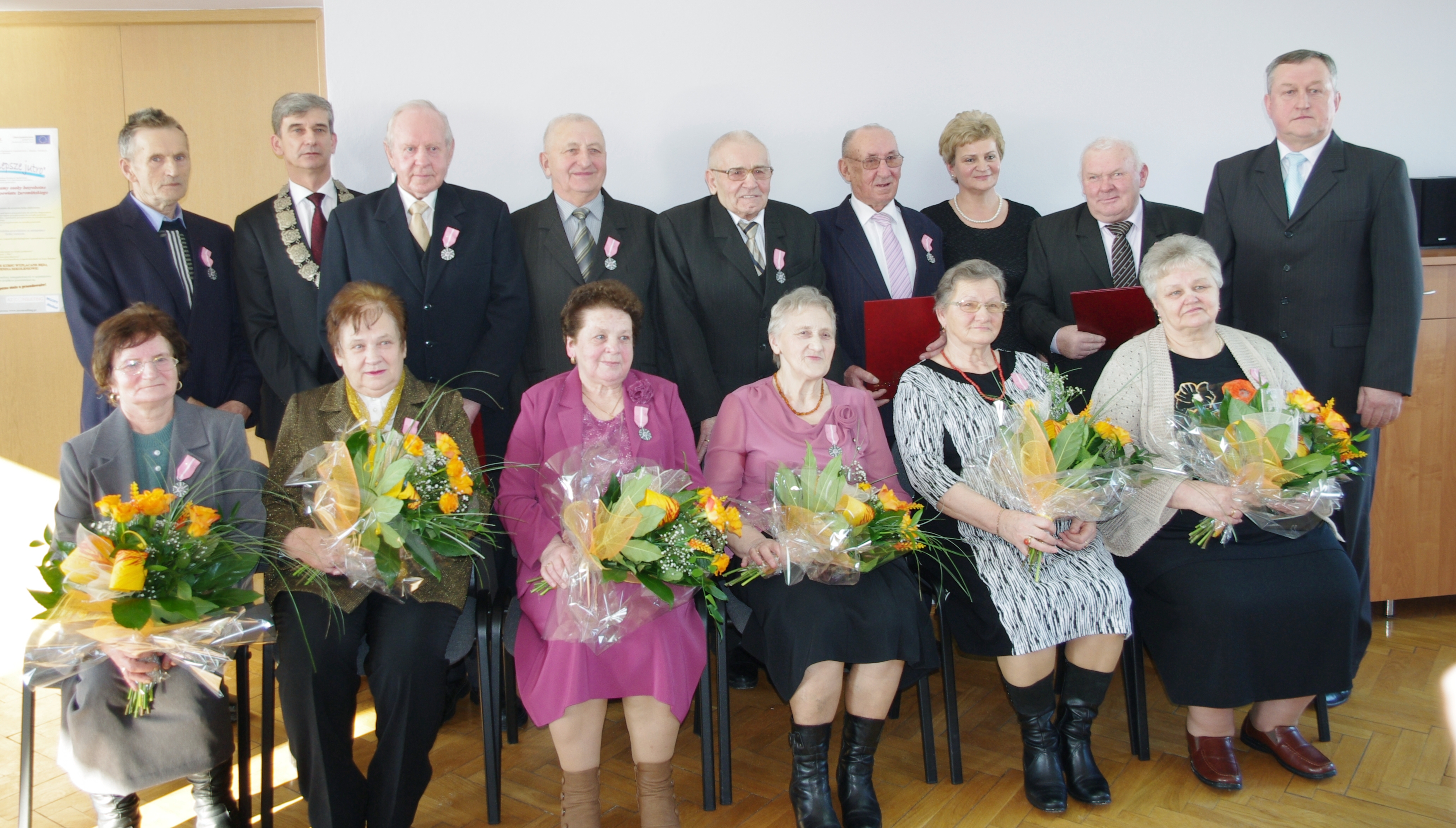 Siedem par małżeńskich mieszkających w gminie Bieżuń w tym roku obchodzi jubileusz złotych godów. Z tej okazji 5 lutego w Urzędzie Stanu Cywilnego odbyła się specjalna uroczystość. Oczywiście najważniejszymi jej gośćmi były pary, które przeżyły w związku małżeńskim pół wieku. Związki małżeńskie, które trwają tyle lat oraz ich trud i wyrzeczenia dla dobra rodziny są doceniane przez władze państwowe. Dlatego tradycyjnie parom uroczyście wręczane są medale „Za długoletnie pożycie małżeńskie” przyznawane przez Prezydenta Rzeczypospolitej Polskiej. W imieniu Prezydenta medale wręczył burmistrz Andrzej Szymański. Odznaczenia otrzymali: Eufemia i Bogusław Domeradzcy, Danuta i Edward Kalkowscy, Honorata i Lucjan Kościelni, Salomea i Benedykt Krogulscy, Hanuta i Jerzy Matusiewicz, Irena i Stanisław Przybyłowscy, Lucyna i Sławomir Wino. Ponadto jubilaci otrzymali dyplomy, listy gratulacyjne oraz kwiaty. Wspólnie z jubilatami świętowali również ich bliscy. Po części oficjalnej wzniesiono toast oraz zaśpiewano sto lat.