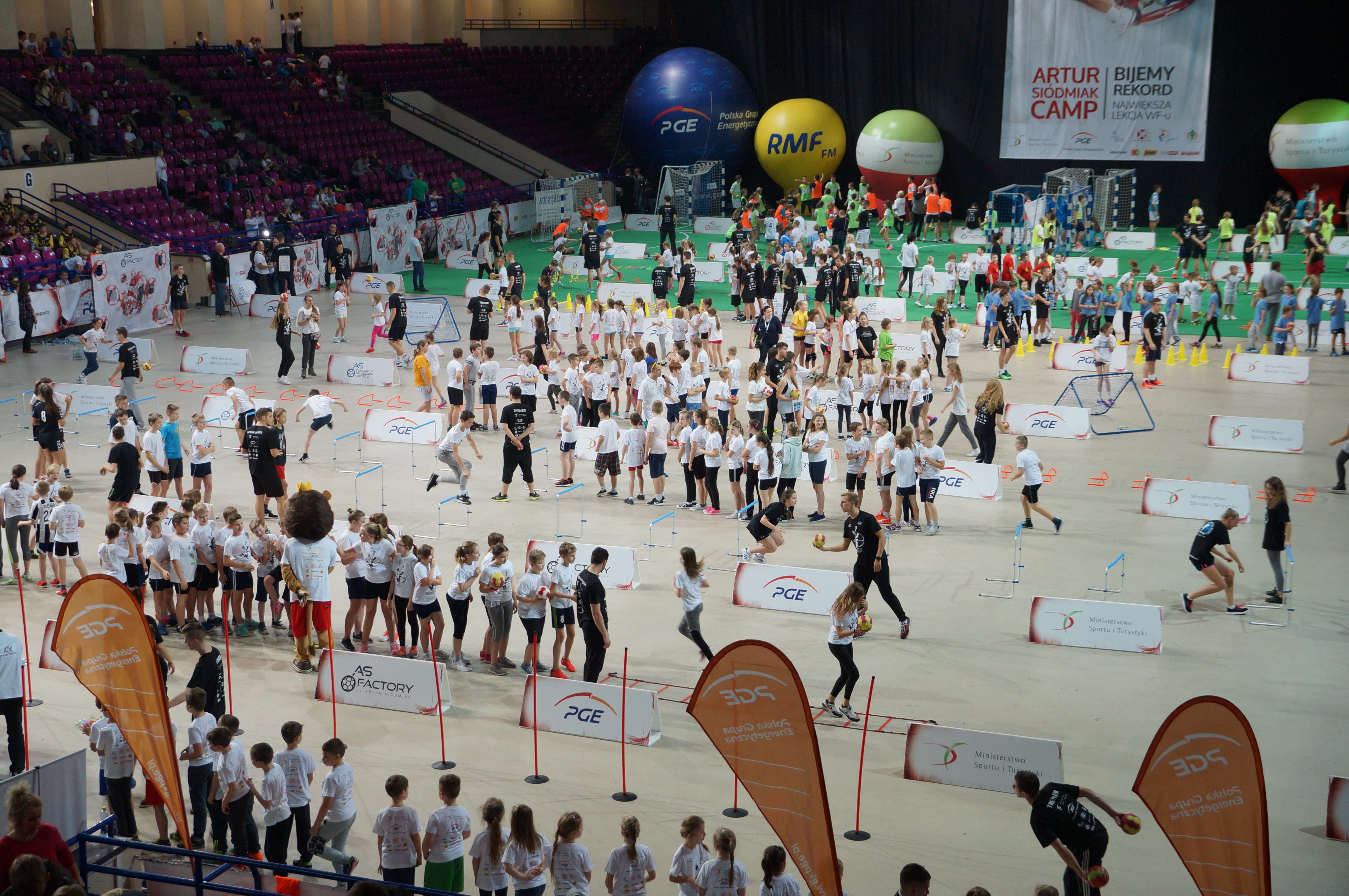 Aż pięć tysięcy dzieci przez dziewięć godzin ćwiczyło w środę na warszawskim Torwarze podczas największej w historii Polski lekcji WF-u. Podczas Artur Siódmiak Camp pobito rekord Guinnessa w liczbie osób jednocześnie trenujących piłkę ręczną. W imprezie wzięli udział szczypiorniści z Bieżunia.
