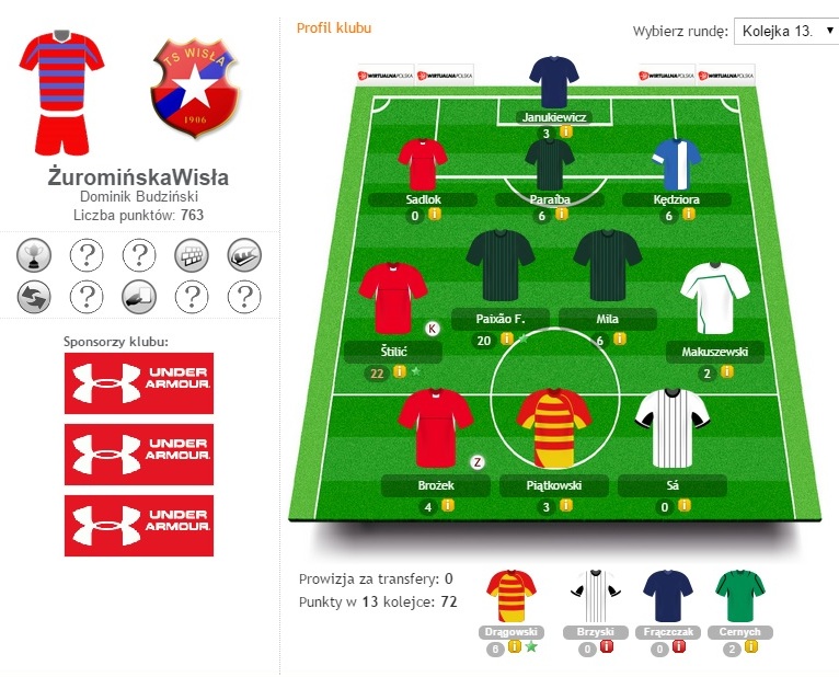 Tymczasem w naszej lidze wiele przetasowań i walka o podium. Tym razem podium Ligi Kuriera uzupełniają drużyny FC Barca i FC Blazzers. Oczywiście w żadnej z tych drużyn nie zabrakło świetnie punktujących w tej kolejce zawodników Śląska Wrocław, a przede wszystkim Flavio Paixao, który strzelił 3 bramki i uzyskał 20 p.