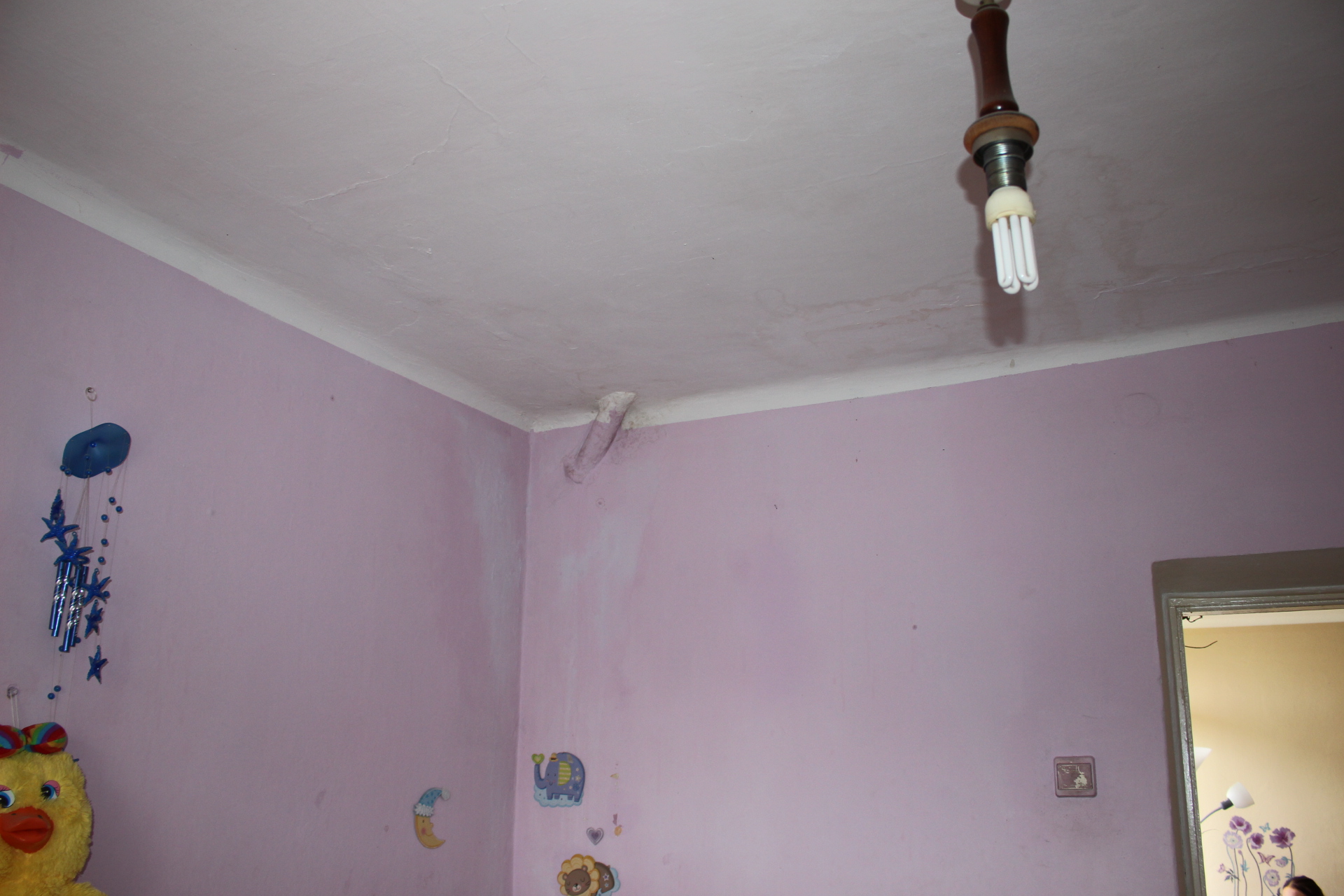 Skarży się, że remontu wymaga też cała instalacja elektryczna. – Założyliśmy żyrandol u córki, ale podciekło i jak wybuchło, to w szoku byłam, aż iskry poszły – relacjonuje. Kobieta uważa, że prace, jakie wykonywane są w budynku ze strony szpitala, są niewystarczające. – Jakby dobrze było zrobione, by nie przeciekało. W Boże Narodzenie siedziałam z miskami, żeby mi woda na kable nie poszła. A u córki na jesieni remontowałam pokój, dwa dni padało, zaczęło lecieć z sufitu – relacjonuje. I pokazuje odchodzącą ze ściany farbę. – Wszystko odchodzi – mówi, pokazując kolejne pokoje.