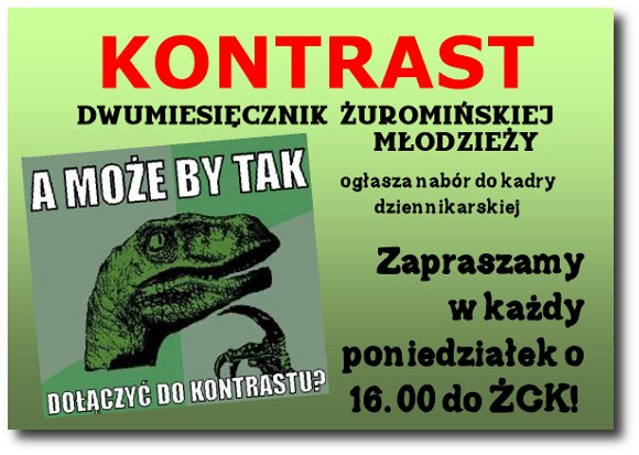 Kontrast – dwumiesięcznik młodzieżowy ogłasza nabór do kadry dziennikarskiej.