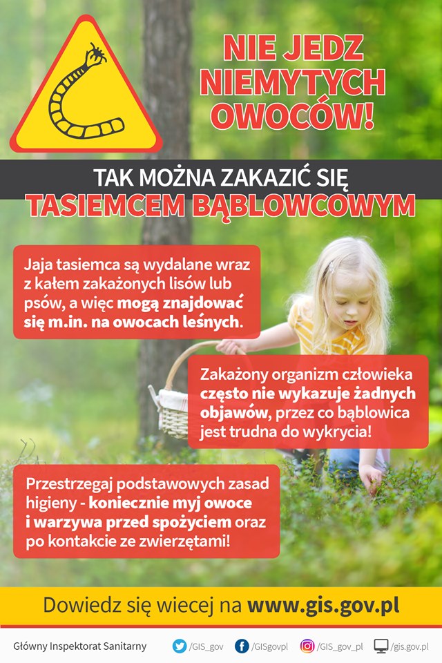 [b]Jak przeciwdziałać i zapobiegać zachorowaniu na bąblowicę?[/b]W zakresie zapobiegania zachorowaniu na bąblowicę najistotniejsze jest upowszechnianie wiedzy nt. zasad higieny podczas i po pracy/relaksie w polu/ogrodzie/lesie, ochrona posesji przed lisami poprzez ogradzanie domostw i zabezpieczanie śmietników, które jako źródło resztek jedzenia wabią dzikie zwierzęta, a także prowadzenie regularnych zabiegów odrobaczania zwierząt domowych preparatami działającymi na tasiemce.