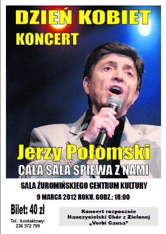 9 marca o godzinie 18:00 w sali Żuromińskiego Centrum Kultury odbędzie się koncert Jerzego Połomskiego.