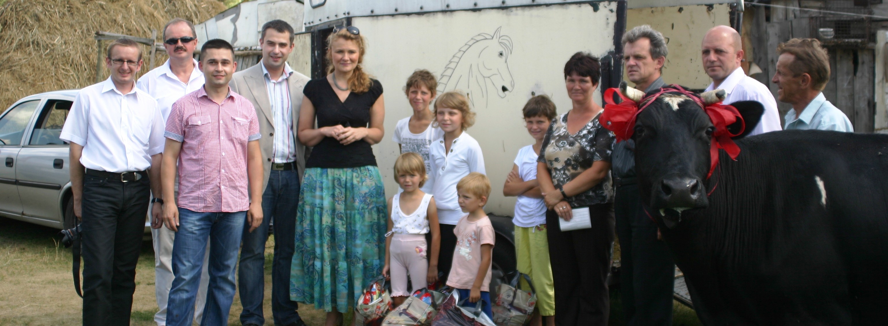 W minioną środę w Rogalach w gminie Siemiątkowo działacze Sojuszu Lewicy Demokratycznej przekazali państwu Teresie i Tomaszowi Klimek krowę zakupioną z funduszy partii oraz dobrowolnych składek członków. Zwierzę przywieziono na specjalnej przyczepie z Bieżunia. Szefostwo partii w tym Katarzyna Piekarska, Krzysztof Gawkowski oraz Marek Budzich wręczyło ten nietypowy prezent nieco zaskoczonym gospodarzom. W uroczystości przekazania obecny był również wójt Siemiątkowa Piotr Kostrzewski oraz sekretarz gminy Mirosław Różański. Pomysł na kupno krowy i przekazanie jej rodzinie Klimków zrodził się w głowie Marka Budzicha. Wcześniej jeden z jego kolegów opowiedział o trudnej sytuacji materialnej, w jakiej znalazła się rodzina z Rogali po stracie krowy. Rodzina z szóstką małych dzieci przez lata hodowała krowę, która zapewniała im codzienne mleko oraz skromne finanse. Kiedy zwierzę padło ich poziom życia znacznie się pogorszył. By jakoś pomóc tym ludziom lokalni działacze postanowili przeznaczyć pieniądze, jakie otrzymała rada powiatowa SLD na zakup krowy. Resztę uzbierano z dobrowolnych składek członków żuromińskiego koła. I tak za kwotę około 2500 złotych kupiono cielną krowę od jednego z gospodarzy w Bieżuniu. Zdaniem Marka Budzicha taka forma pomocy jest bardziej skuteczna. – Żywa krowa da tej rodzinie więcej pożytku niż pieniądze w gotówce- mówi szef żuromińskiej SLD. -Chcę zaznaczyć, że wcześniej skonfrontowaliśmy i dokładnie sprawdziliśmy sytuację tej rodziny i jestem pewny, że to zwierzę na pewno im się przyda- dodaje. Swoim pomysłem Marek Budzich zaraził Katarzynę Piekarską przewodniczącą mazowieckiej SLD oraz Krzysztofa Gawkowskiego sekretarza. – Robiliśmy już różne akcje- wyjaśnia Katarzyna Piekarska, przygotowywaliśmy szkolne wyprawki, organizowaliśmy wyjazdy na kolonie, rozdawaliśmy paczki świąteczne dla dzieci, ale takiego prezentu jeszcze nie było. Uważam, że to znakomity pomysł i na pewno pomoże tej rodzinie- dodaje Piekarska. Działacze żuromińskiej lewicy nie wykluczają kolejnych tak spektakularnych form pomocy potrzebującym rodzinom.