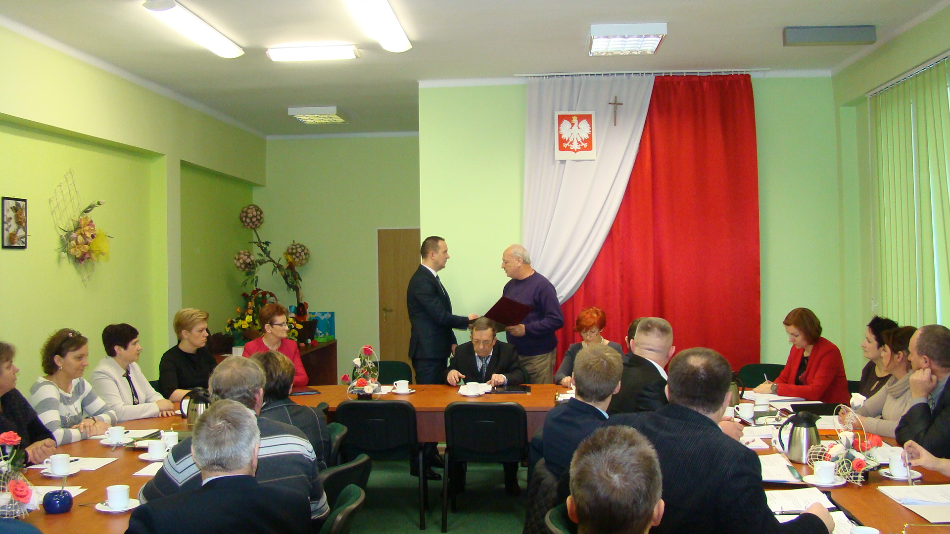 Ponowne rozdanie kart do głosowania. Po blisko godzinnym głosowaniu i podaniu wyników pozostaje jeszcze głosowanie do Gminnej Komisji Rewizyjnej. Wreszcie zostają ogłoszone końcowe wyniki. Kolejnym punktem było ustalenie uposażenie wójta. Na ten czas wójt Jacek Grzybicki opuszcza salę obrad, a radni podają kolejne wersje. Po krótkiej dyskusji z czterech wersji zwycięża wersja pierwsza, czyli 4400 zł zasadnicza, 1900 zł dodatek funkcyjny i 30% dodatek specjalny, co stanowi kwotę 8190 zł brutto (5800zł netto). Jeszcze tylko interpelacje i wolne wnioski.