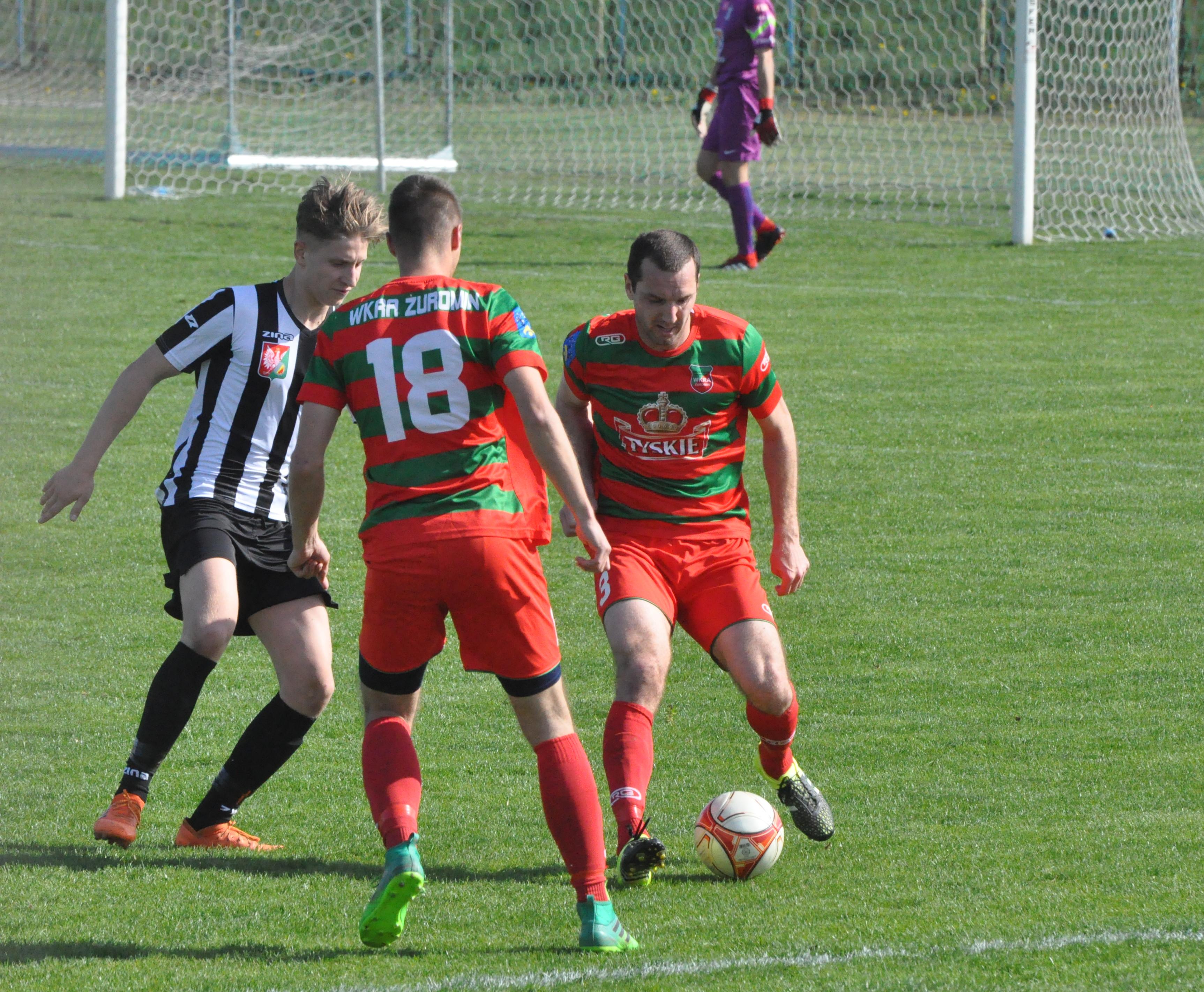 PIŁKA NOŻNA\ Huragan Wołomin wykorzystał słabszą dyspozycję defensywy Wkry Żuromin i zdecydowanie wygrał przy Żeromskiego. „Zielono-czerwoni” mieli swoje okazje, ale nie potrafili zamienić ich na bramki. Przegrali z liderem rozgrywek 1:5