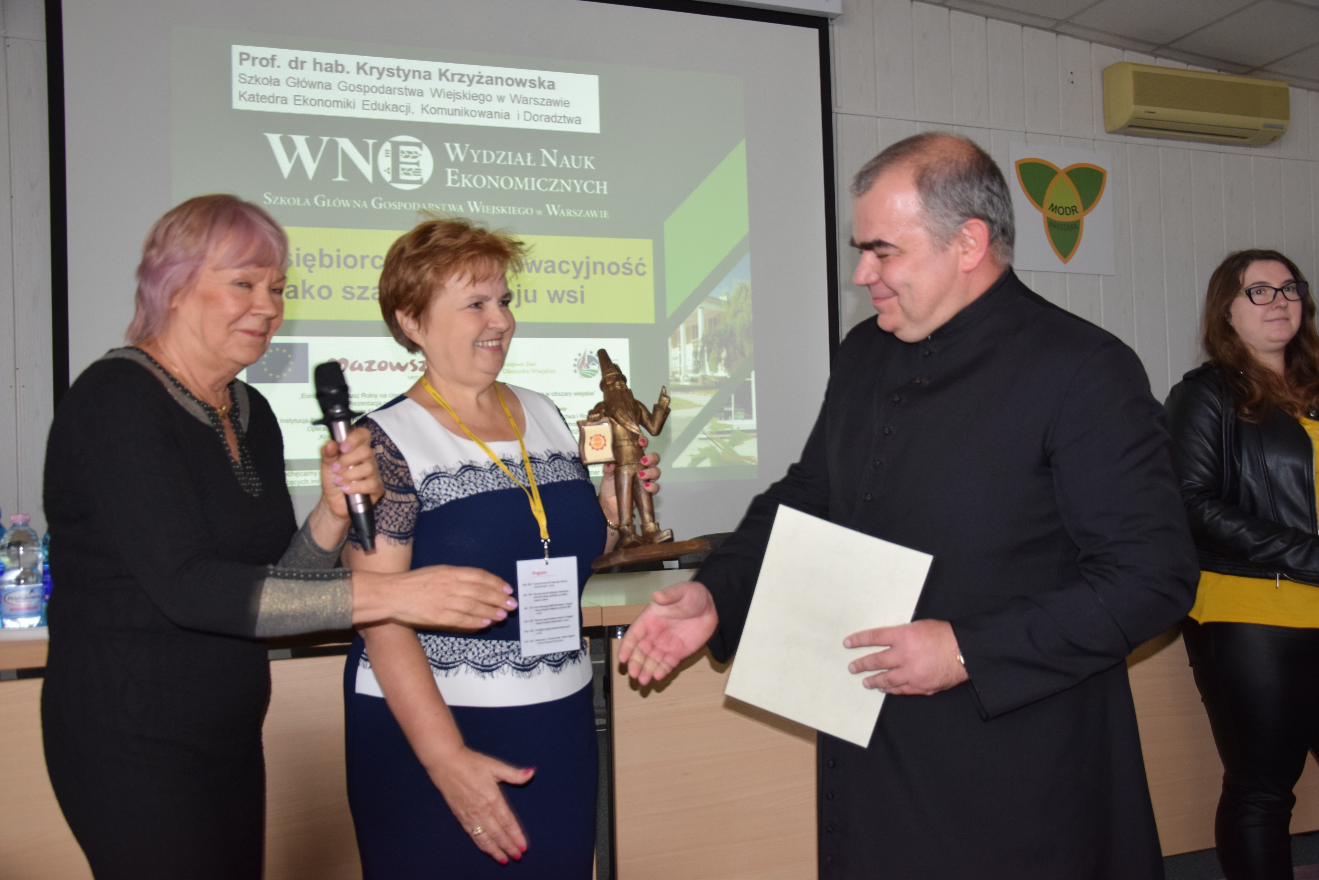 WYDARZENIA\ Podczas Jesiennego Jarmarku „Od pola do stołu” w Mazowieckim Ośrodku Doradztwa Rolniczego Poświętne, ks. Grzegorz Ślesicki odebrał certyfikat uprawniający do oznaczenia lubowidzkiego stroju „Marka Przyjazne Mazowsze”.