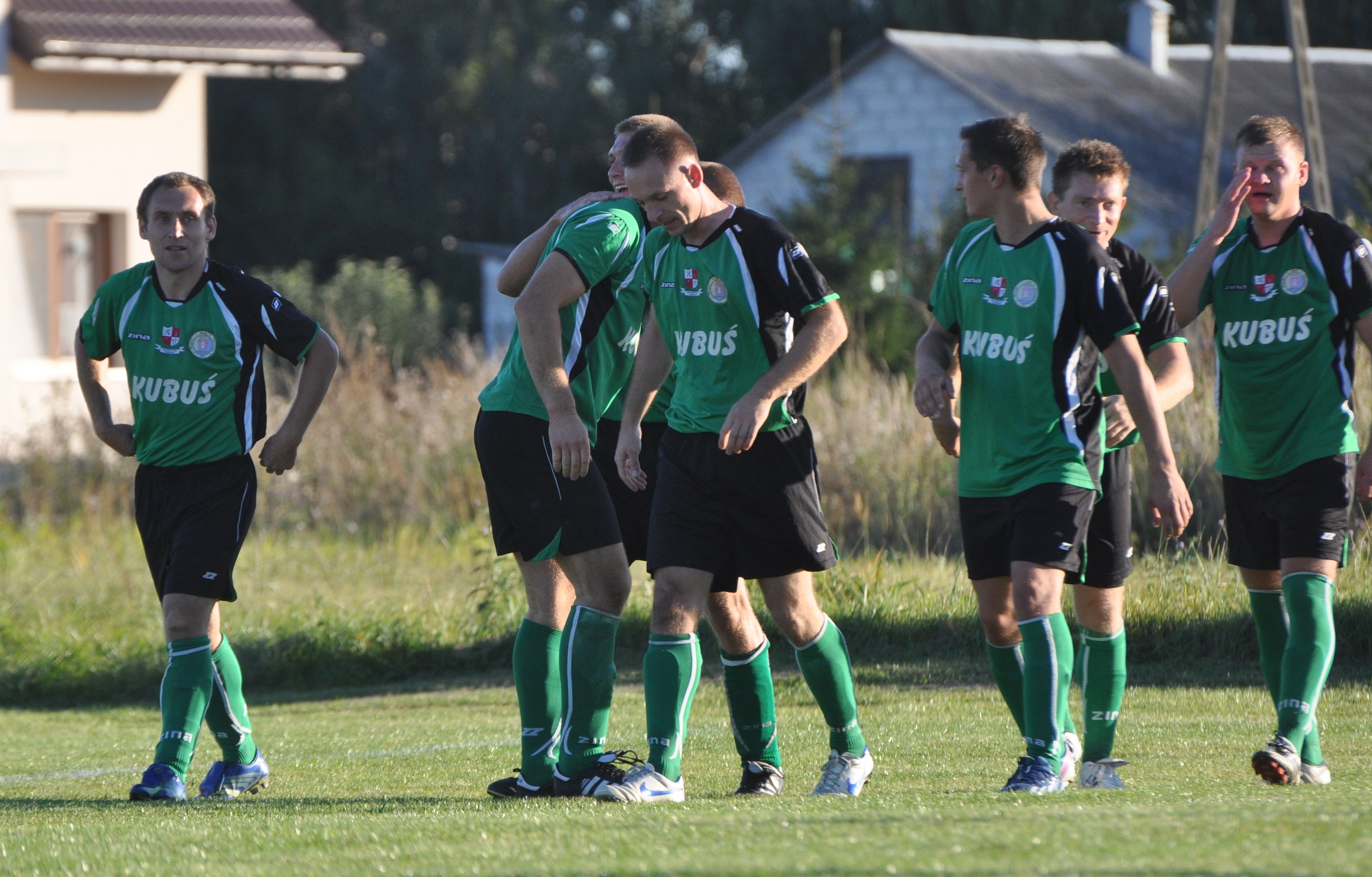 Do przerwy jednak nie zapowiadało się na wysoką porażkę graczy Marcina Rokickiego. Przed przerwą stan rywalizacji strzałem z rzutu wolnego wyrównał najlepszy strzelec drużyny Michał Dzięgielewski. Niestety zanim arbiter zakończył pierwszą odsłonę rywalizacji na gola Dzięgielewskiego odpowiedział najlepszy strzelec Żbika, a jednocześnie ligi Marek Osiński. Wkra na przerwę schodziła tylko z jedną bramką straty.