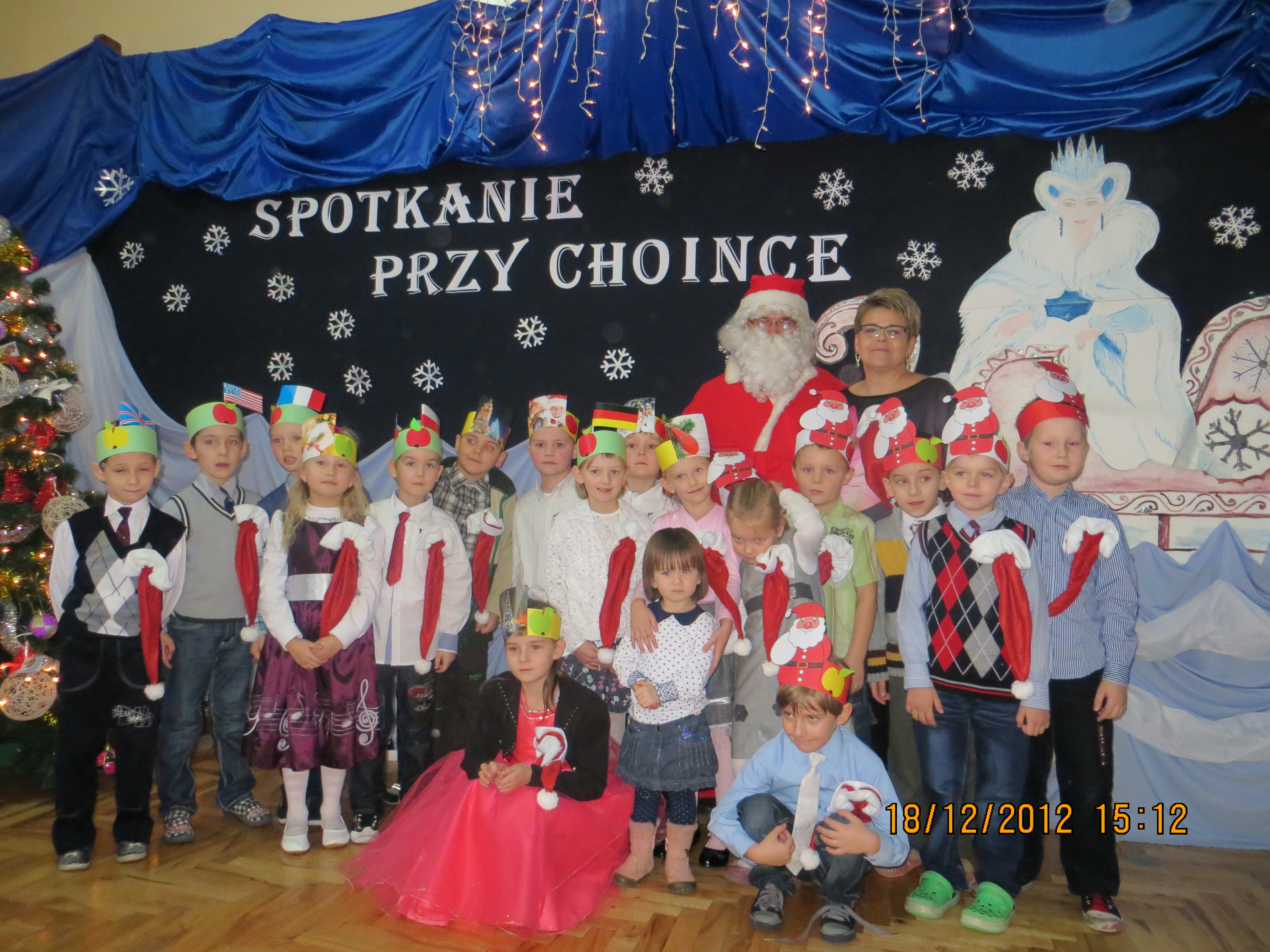 „Spotkanie przy choince” taki tytuł miało przedświąteczne przedstawienie przygotowane przez dzieci i nauczycieli Samorządowego Przedszkola w Lutocinie. W spotkaniu uczestniczyli rodzice najmłodszych oraz Święty Mikołaj. Uroczystość połączona była z wystawą prac i Rodzinnym Konkursem plastycznym pod hasłem “Witaj Święty Mikołaju” zorganizowanym przez Dyrektor Przedszkola Samorządowego w Lutocinie Bożenę Janicką i nauczycielkę Justynę Jędrzejak. Nagrodę główną w konkursie otrzymały Alicja i Aleksandra Jankiewicz z bratem i rodzicami. Dzieci, rodzice i nauczyciele wspólnie tańczyli, śpiewali i w końcu składali sobie świąteczne życzenia.