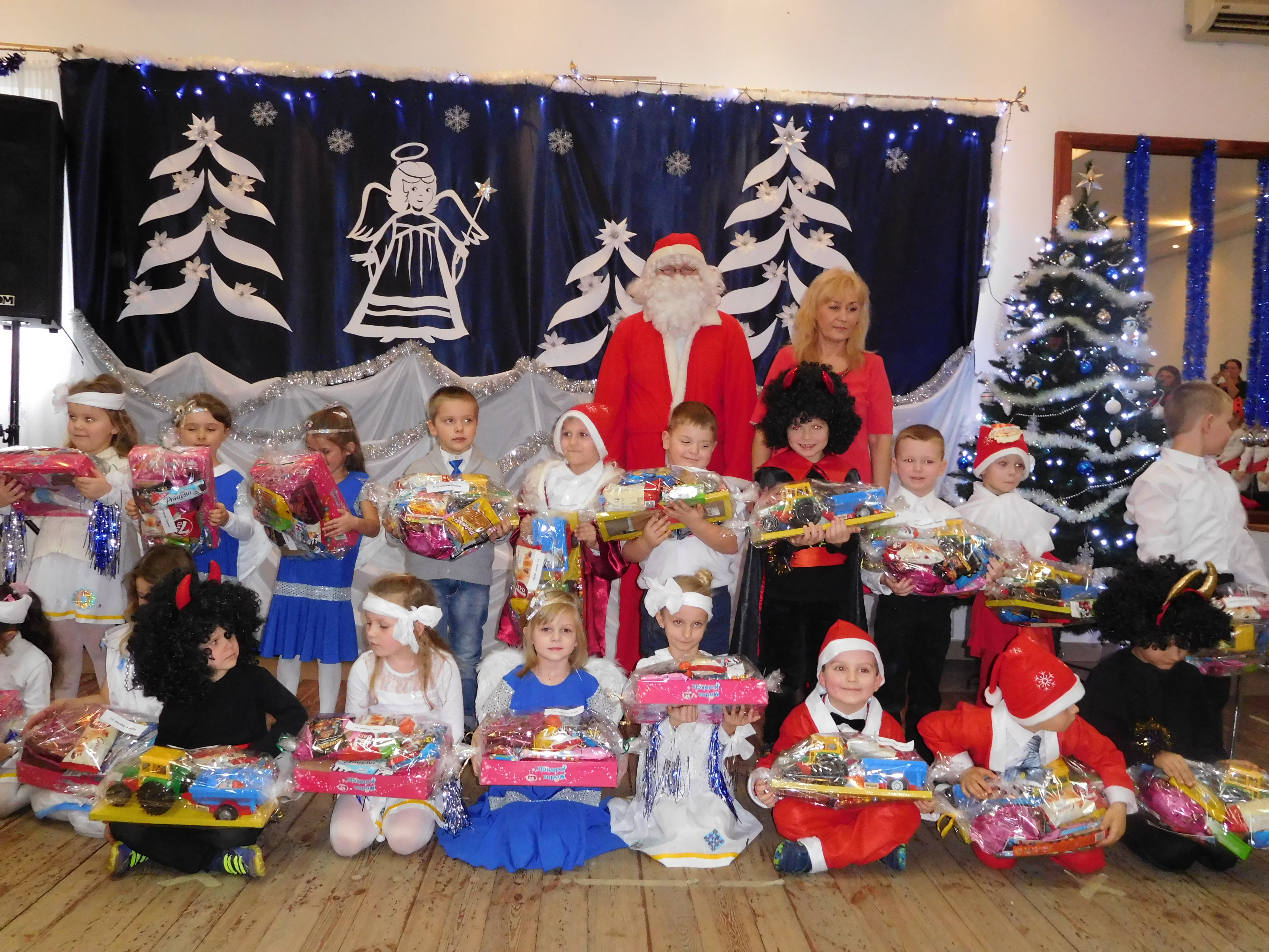 Świąteczne spotkanie odbyło się 19 grudnia. Uczestniczyło w nim około 200 osób. Przedszkolaki wystąpiły dla przybyłych gości z programem artystycznym. Tańczyły, śpiewały i recytowały wiersze tematycznie związane ze Świętami Bożego Narodzenia. Na scenie występowały Dzieci, Śnieżynki, Aniołki, Diabełki, Mikołaje, Choinki z grupy „Biedronek”, „Pszczółek” i „Muchomorków”. Całość splatała bajeczna choreografia i przepiękna sceneria z choinką w tle. Dzieciom przyglądał się Mikołaj, który wszystkie przedszkolaki obdarował świątecznymi upominkami. Uroczystość uwieńczyły tańce z rodzicami, dziadkami, rodzeństwem, Mikołajem i przedszkolnymi ciociami oraz wspólne biesiadowanie przy świątecznych stołach. Organizatorami spotkania był dyrektor oraz Rada Rodziców. Kadra przedszkola dziękuje Radzie Rodziców za pomoc w organizacji uroczystości a Zarządowi OSP za współpracę i udostępnienie sali.