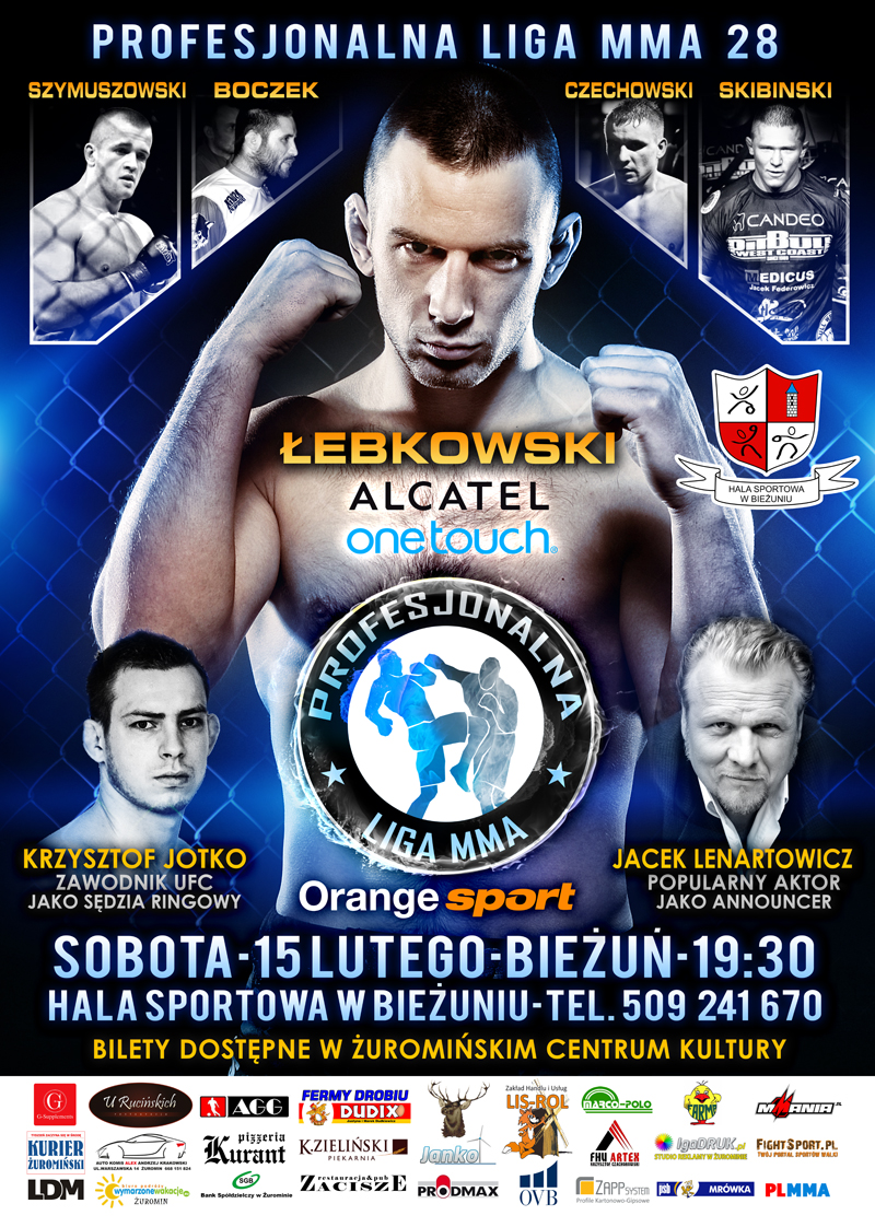 W sobotę, 15 lutego, w Bieżuńskiej Hali Sportowej odbędzie się gala Profesjonalnej Ligi MMA 28. W oktagonie będziemy świadkami dziewięciu pojedynków. W najważniejszym z nich, w walce wieczoru, obejrzymy Kamila Łebkowskiego. Żurominianin do walki przygotowuje się w wielu miejscach w kraju. Dwudziestopięcioletni fighter nie ma teraz ani chwili wolnego. Cały czas jest w rozjazdach. Trenuje w Białej Podlaskiej, Warszawie, Żurominie, sparuje w Łodzi. Do walki chce być przygotowany jak najlepiej.
