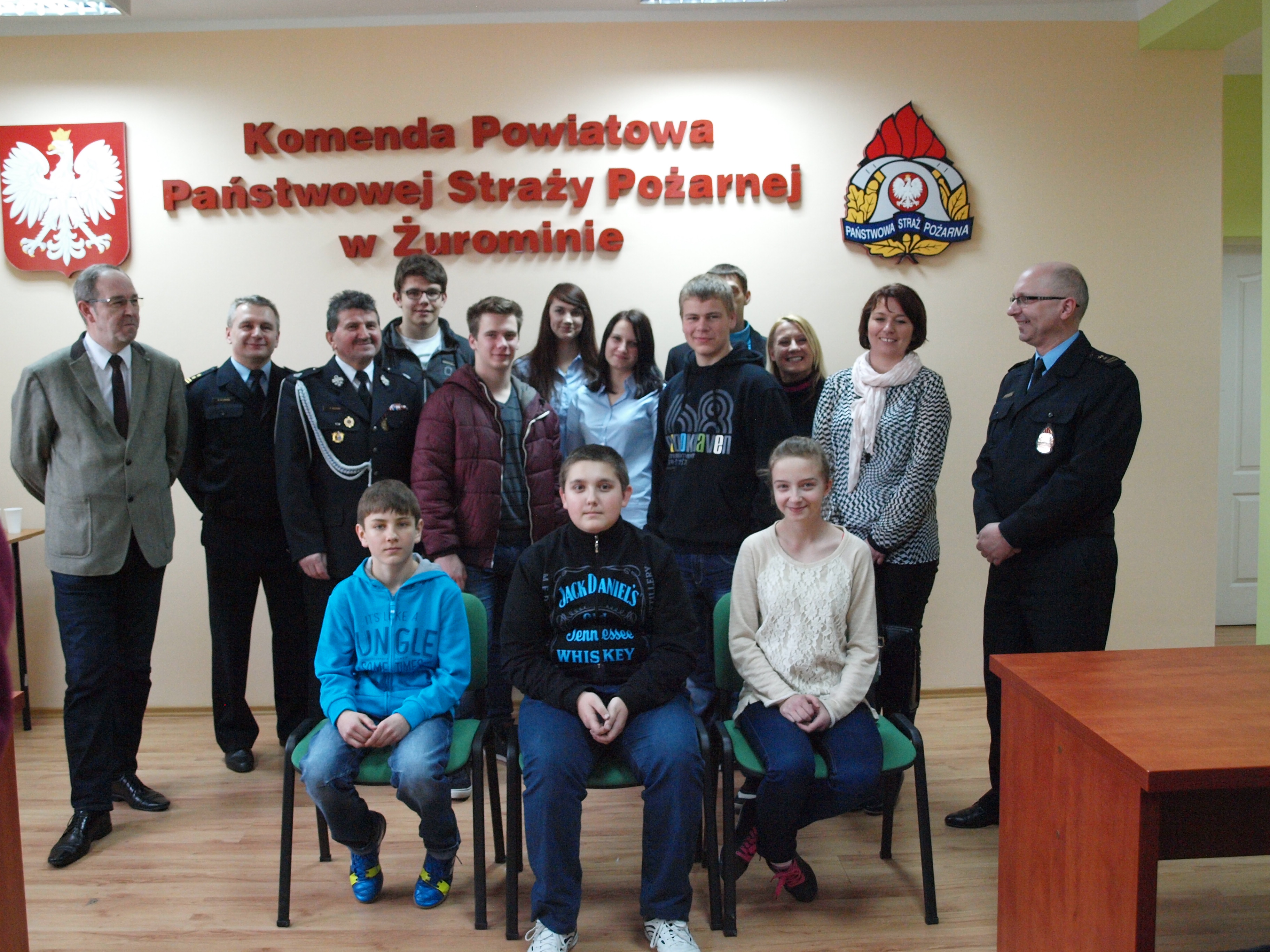 Po zakończeniu eliminacji gminnych przyszedł czas na eliminacje powiatowe Ogólnopolskiego Turnieju Wiedzy Pożarniczej „Młodzież zapobiega pożarom”. W tym roku już po raz kolejny powiatowy etap konkursu odbył się w Komendzie Powiatowej Państwowej Straży Pożarnej w Żurominie. 18 marca 36 uczniów ze szkół podstawowych, gimnazjów i szkół ponadgimnazjalnych rozwiązywało test, który miał sprawdzić ich wiedzę na temat przepisów przeciwpożarowych, zasad postępowania na wypadek pożaru, praktycznych umiejętności posługiwania się podręcznym sprzętem gaśniczym, wiedzy na temat techniki pożarniczej, organizacji ochrony przeciwpożarowej oraz historii i tradycji ruchu strażackiego. Ponadto uczestnicy konkursu zwiedzili strażnicę żuromińskiej Komendy. Za zajęcie pierwszych trzech miejsc uczniowie otrzymali nagrody. Kolejnym etapem konkursu są eliminacje wojewódzkie, w których wezmą udział zwycięzcy eliminacji powiatowych. Organizatorami konkursu jest Komenda Powiatowa Państwowej Straży Pożarnej w Żurominie przy współudziale Starostwa Powiatowe w Żurominie oraz Oddziału Powiatowego Związku Ochotniczych Straży Pożarnych w Żurominie.