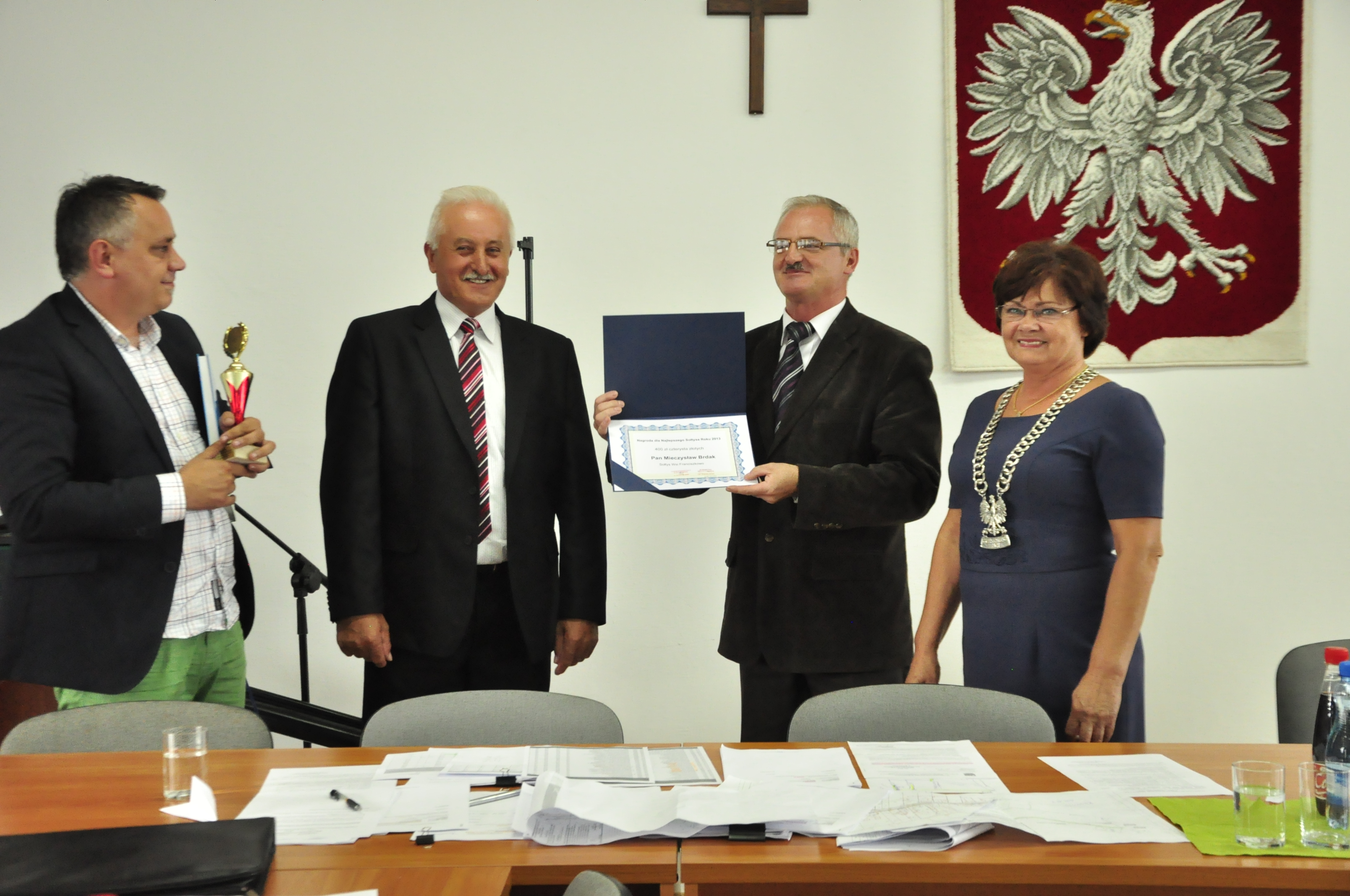 Sołtys Mieczysław Brdak z Franciszkowa został nagrodzony przez nas statuetką, a Burmistrz Gminy i Miasta Żuromin ufundował dla sołtysa nagrodę pieniężną – czek na 400 zł. Do gratulacji dołączyli się również radni Rady Miejskiej, gdyż nagrody wręczone zostały podczas sesji 28 sierpnia