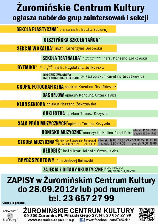 Żuromińskie Centrum Kultury ogłasza nabór do grup zainteresowań i sekcji