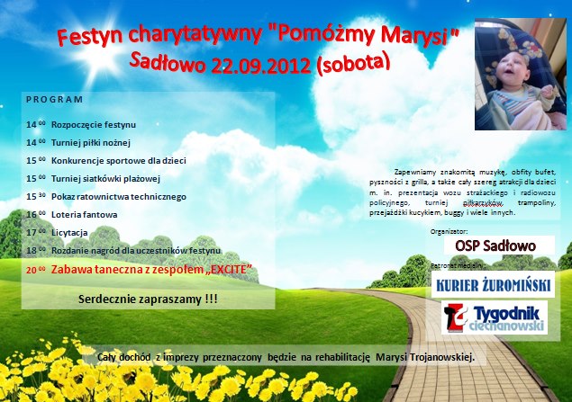 Strażacy z Sadłowa postanowili pomóc chorej Marysi. 22 września w Sadłowie odbędzie się charytatywny festyn.