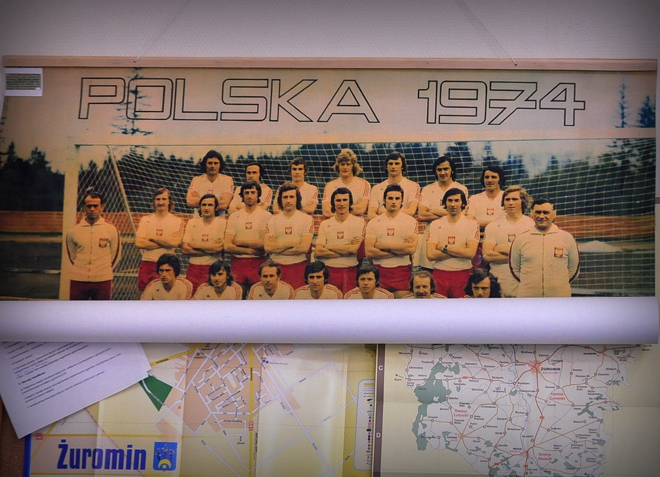 „Niedawno, bo trzy tygodnie temu zakończył się Mundial 2014 r. w Brazylii. Polski tam nie było. Dlatego warto wspomnieć, ze 40 lat temu na Mundialu 1974 r. w Niemczech, Orły Górskiego były rewelacją podczas finałowego turnieju mistrzostw świata. Wywalczyli trzecie miejsce, pokonując takie potęgi jak: Argentyna, Włochy czy Brazylia. Rewelacyjną reprezentację Kazimierza Górskiego, nazywaną Orłami Górskiego powitano w Polsce uroczyście na wielkim balu w dniu 9 lipca 1974 roku restauracji Solec (na Powiślu) w Warszawie. Ja, Lucjan Lorkowski wraz z żoną Barbarą mieliśmy szczęście być na tym uroczystym powitaniu. Dla nas była i jest to historia niecodzienna i ciekawa jak z filmu „Przygody Nikodema Dyzmy”. W tym właśnie dniu czyli 9 lipca byliśmy w Warszawie w szpitalu Solec na Powiślu celem odebrania nowonarodzonego (7 lipca 1974 r.) mojego siostrzeńca (…). W czasie załatwiania przez siostrę wypisu ze szpitala , ja i moja żona postanowiliśmy się trochę posilić przed podróżą. Ponieważ szpital Solec był obok restauracji Solec więc tam udaliśmy się na posiłek, nie wiedząc absolutnie nic o powitaniu Orłów Górskiego. Prawdopodobnie główne wejście do restauracji Solec było wtedy zamknięte, ale my ponieważ byliśmy wtedy głodni (była to pora obiadowa)jakimś wejściem weszliśmy do środka lokalu i zajęliśmy miejsce przy stoliku. Podeszła do nas kelnerka i oznajmiła, że za godzinę rozpocznie się tu wielka impreza. Jakimś cudem uprosiliśmy ją, żeby nas trochę nakarmiła. Więc kazała zająć określony stolik w kącie lokalu i przyniosła obiad. (…)Zorientowaliśmy się, że możemy być przypadkowymi gośćmi na wielkiej imprezie, dlatego podany obiad jedliśmy wolniutko a po 30 minutach usadowiono nas w centrum lokalu. Niebawem zaczęli przybywać wielcy zaproszeni goście, tzw. śmietanka Warszawy. Pamiętam wejście Daniela Olbrychskiego z Marylą Rodowicz (40 lat temu to była piękna, młoda i wolna para). Weszli i zajęli miejsce obok naszego stolika. Następnie zjawiła się cała drużyna piłkarska razem z trenerem Kazimierzem Górskim. Ja czasu nie marnowałem. Nabyłem tam na miejscu w restauracji Solec ten okazjonalny plakat Orłów Górskiego i zacząłem zbierać autografy. Udało mi się uzyskać podpisy na plakacie niżej wymienionych piłkarzy: Kazimierz Górski – trener, Jan Tomaszewski – bramkarz, Grzegorz lato – król strzelców tego turnieju, Kazimierz Deyna, Antoni Szymanowski. Dalszą zabawę wraz z „łowieniem” autografów musiałem zakończyć, bo poczucie obowiązku zabrania Januszka ze szpitala było ważniejsze. No cóż, Januszek chociaż urodził się pod szczęśliwą gwiazdą polskiego piłkarstwa, to piłkarz z niego żaden. Natomiast syn jego 9 – letni Miłosz już kopie, może ”Orłem” będzie, chociaż we Wkrze Żuromin”