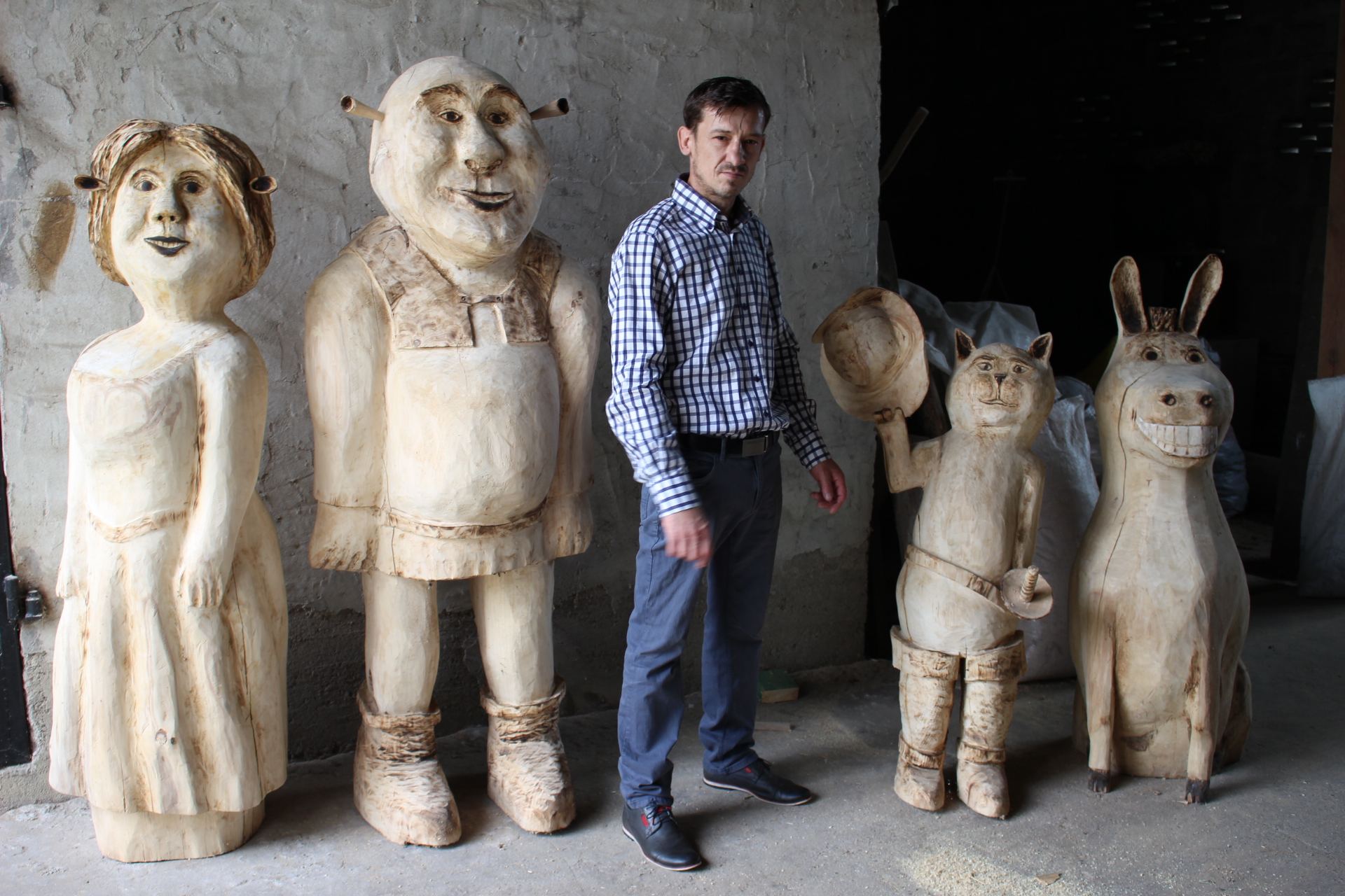 Ale odwiedzając pana Jurka dziś podziwiać można jego inne dzieła. Niegdyś w przydomowym budynku gospodarczym stało kilka postaci z bajki o Fionie i Shrecku, które powędrowały pod Warszawę do parku przy jednym z prywatnych przedszkoli. Klient z Norwegii zamówił z kolei rzeźbione w drewnie orły. Na odbiór czekała też piękna ławka, która miała stanąć w prywatnym ogródku.