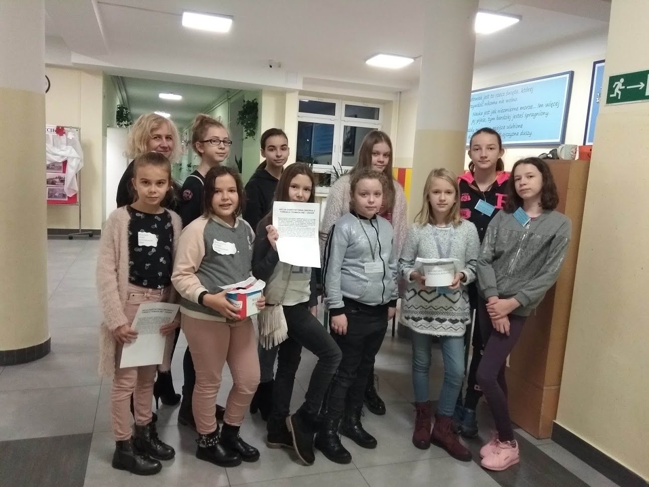 W listopadzie zaangażowali w pomoc dla Oskara Kwiatkowskiego, chłopca z Żuromina, który potrzebuje drogiego leku, by normalnie żyć. Podczas akcji charytatywnej, jaką przeprowadzili w swojej szkole udało się zebrać ponad tysiąc zł, które wpłacono na konto fundacji „Serce dziecka” nr 17 1160 2202 0000 0000 8297 2843, numer swift BIGBPLPW, z dopiskiem „ZC 8410 Oskar Kwiatkowski”.