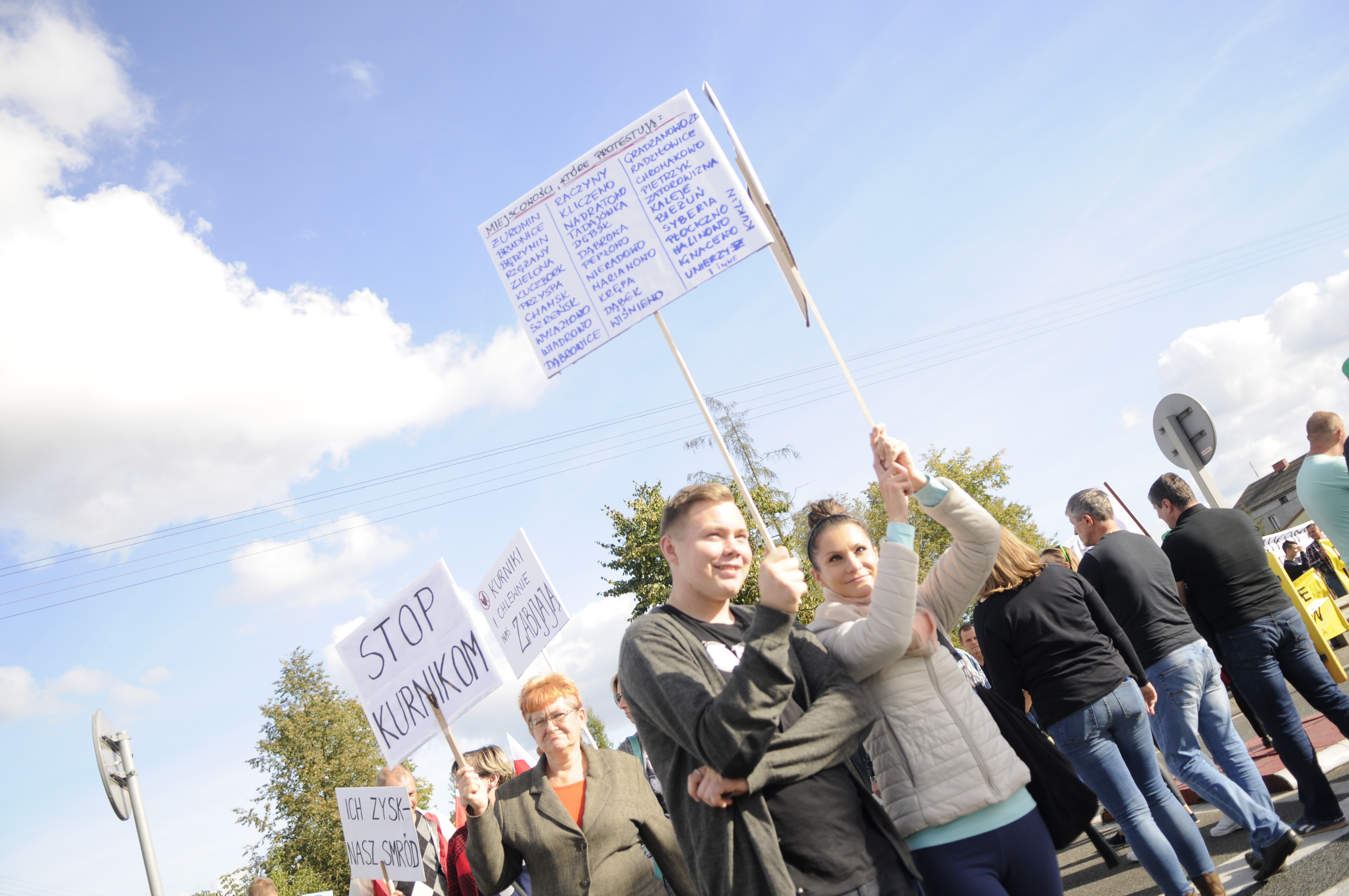 Protestujący 1.: Co mnie boli? Przede wszystkim to, że nie da się tu mieszkać. Codziennie rano wstaję z bólem głowy, codziennie panuje tu smród nie do wytrzymania. W gorące lato nie mogę otworzyć okna, bo zaraz cały dom przesiąknie przeraźliwym smrodem. Nie stać mnie, żeby się wyprowadzić. Nie mam sił, żeby tu mieszkać.
