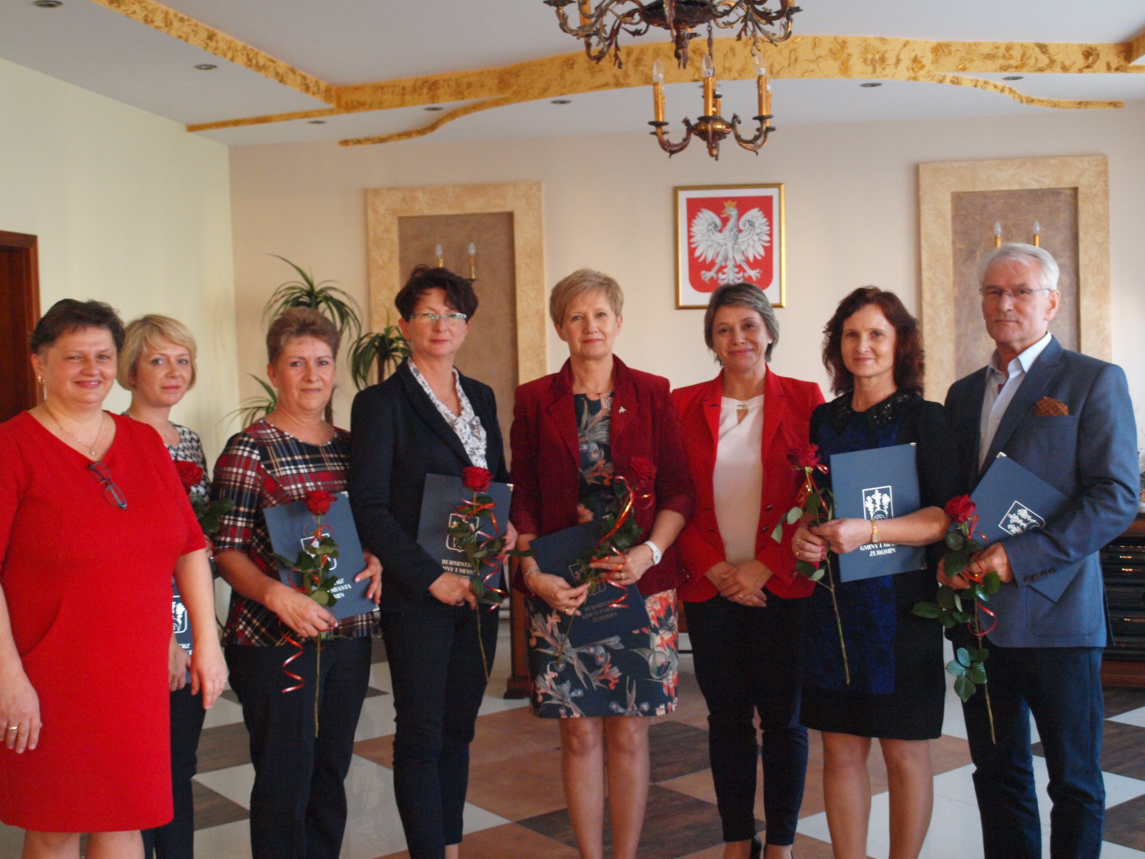 Urząd Gminy i Miasta w Żurominie również nie zapomniał o wyróżnieniach dla najbardziej zasłużonych nauczycieli. Gminna uroczystość odbyła się w poniedziałek 16 października. Sześcioro pedagogów odebrało nagrody z rąk burmistrz Anety Goliat i kierownika Wydziału Oświaty Bożeny Fijałkowskiej. W tym roku wyróżniony został jeden dyrektor i pięć nauczycielek: Roman Lewandowski (dyrektor SP nr 2 w Żurominie), Elżbieta Piwowarska-Grześkiewicz ( nauczyciel SP w Kliczewie Dużym), Lilia Sochocka ( nauczyciel SP w Będzyminie), Alina Liszewska (nauczyciel w SP w Raczynach), Ewa Maryla Lewandowska (nauczyciel SP w Poniatowie) oraz Joanna Bukowska ( nauczyciel w Przedszkolu nr 2 w Żurominie).