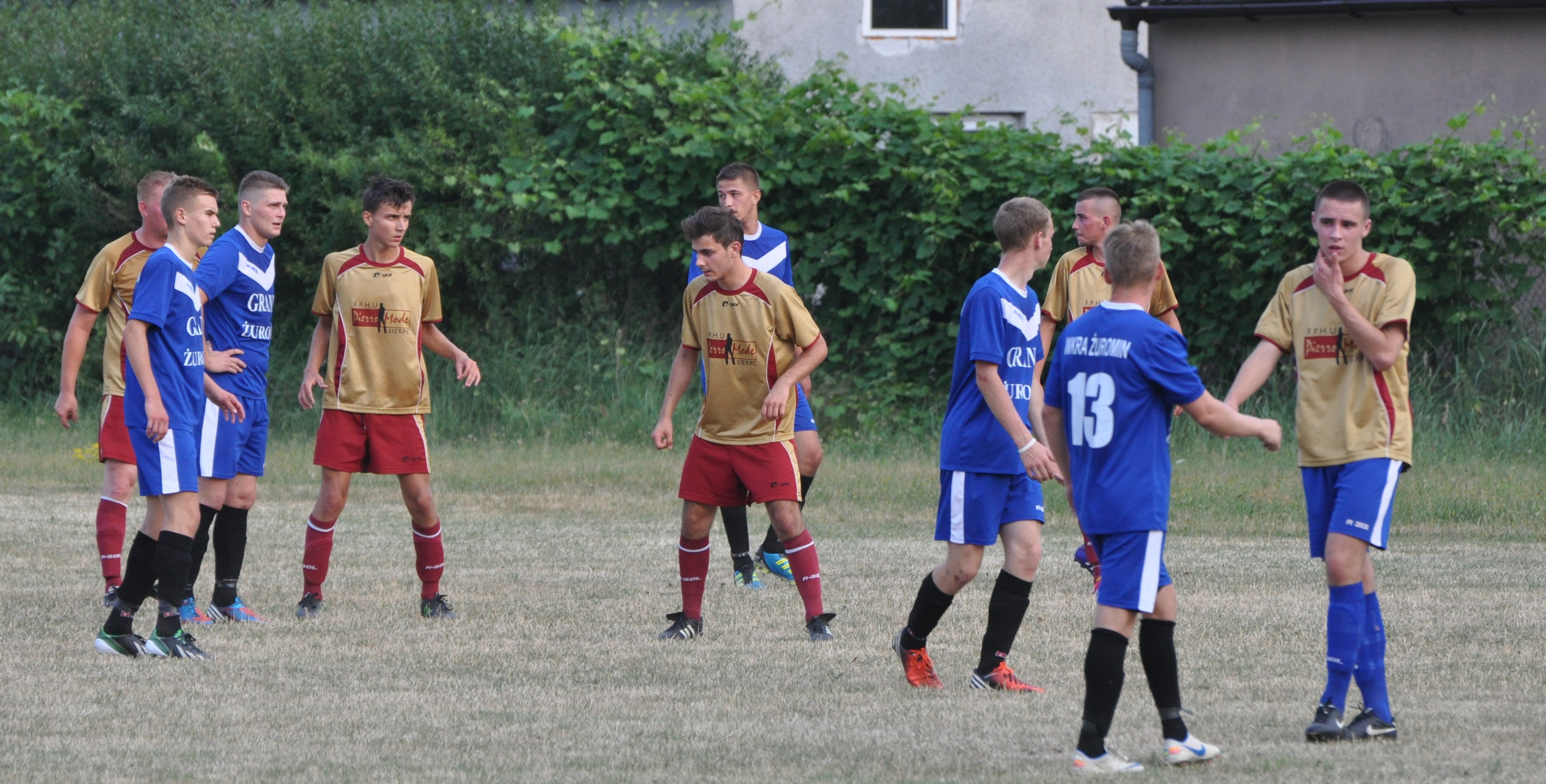 Wkra Żuromin od początku spotkania miała przewagę optyczną nad rywalami. Na trudnym boisku gospodarze próbowali rozgrywać futbolówkę i krzyżowym zagraniem uruchomić skrzydłowego, którzy za zadanie miał dośrodkować piłkę na wbiegających zawodników. Kilka takich akcji żurominianie potrafili stworzyć, ale żadna z nich nie była skuteczna. Bramkowało celnych uderzeń na bramkę, dobrze w defensywie spisywał się Marcin Harzyński.