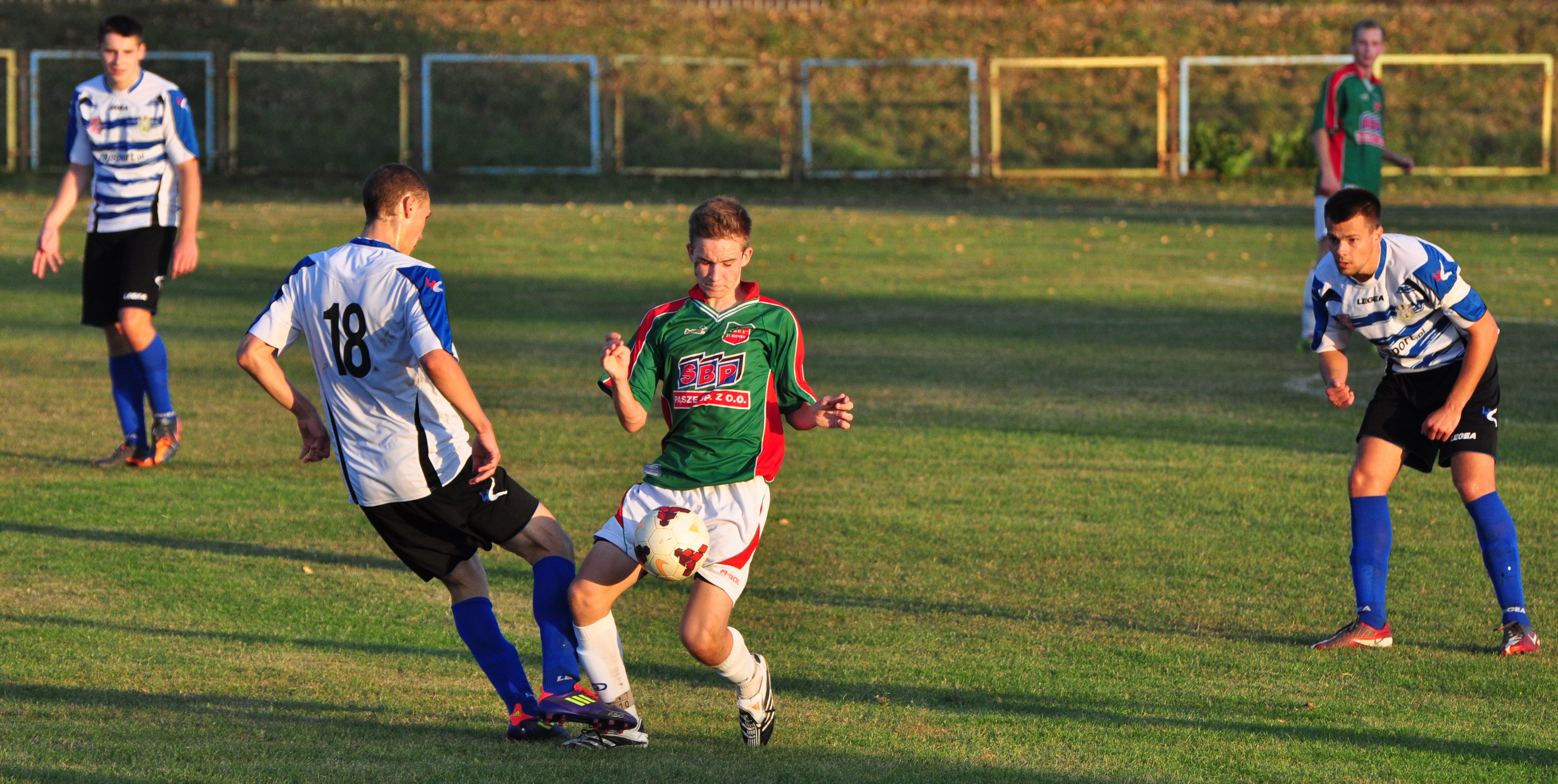 Przed przerwą oba zespoły stworzyły sobie niewiele okazji strzeleckich. Już w szóstej minucie spotkania Piotr Melchinkiewicz mógł wpisać się na listę strzelców i otworzyć wynik spotkania. Nasz zawodnik niestety w dobrej sytuacji pośpieszył się z oddaniem strzału. Uderzenie słabszą, lewą nogą, nie sprawiło problemów bramkarzowi. W odpowiedzi zaatakował zespół z Łomianek. Po akcji lewą stroną boiska w dobrej sytuacji znalazł się Gac. Za pierwszym razem uderzenie minęło słupek bramki Szmyta, a za drugim ponownie gościom zabrakło precyzji.