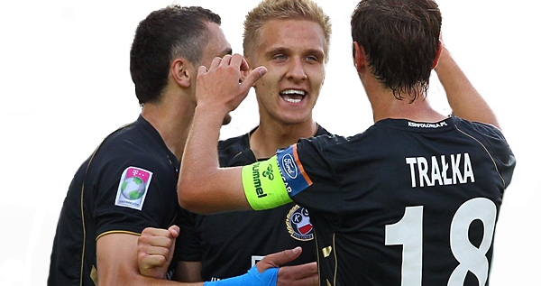 [b]Tak padło historyczne trafienie[/b]Była 52 minuta spotkania. Piłkę na prawym skrzydle otrzymał Bruno, dośrodkował swoją słabszą prawą nogą Pavel Sultes przytomnie zgrał futbolówkę głową do ustawionego na piątym metrze Łukasz Teodorczyka. Wychowanek żuromińskiej Wkry strzelił na bramkę. GKS-u nie uratowała rozpaczliwa interwencja Łukasza Sapeli. Polonia wyszła na prowadzenie za sprawą dwudziestoletniego napastnika. Cztery minuty później młody żurominianin opuścił plac gry. Jego miejsce zajął Daniel Sikorski. Gol młodego gracza jest również do obejrzenia w Internecie na stronie ekstraklasa.tv