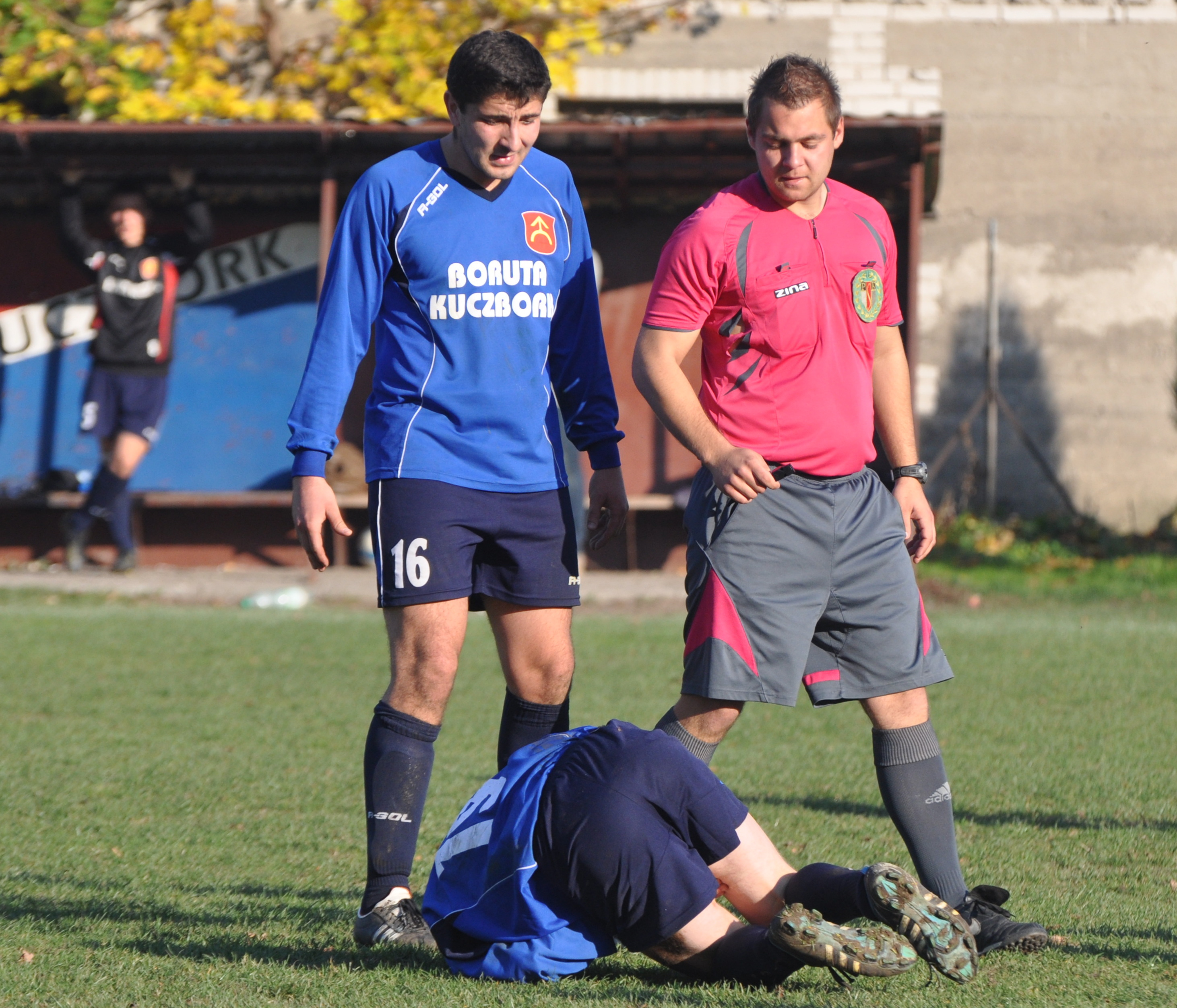 Oba zespoły chciały zapisać na swoje konto punkty. „Boruciarze” chcąc poprawić swoją pozycję w lidze, mieli zdominować zespół z Krasnego i zgarnąć pełną pulę. Niestety, sami popełnili błędy, które im to uniemożliwiły. Prostopadłe zagranie Tomasza Słowika w pole karne, bramkarz zespołu z Kuczborka wyraźnie nie popisał się i wykorzystując jego błąd, Łukasz Trajer wyprowadził Iskrę na prowadzenie. Silną bronią zespołu Mariusza Kołakowskiego są stałe fragmenty gry. Właśnie w taki sposób gospodarze doprowadzili do wyrównania stanu rywalizacji w pojedynku z zespołem z Krasnego. Z rzutu rożnego piłka posłana została w szesnastkę, a dośrodkowanie wykończył Krzysztof Kuskowski. Niedługo później arbiter tego spotkania zakończył pierwszą połowę meczu.