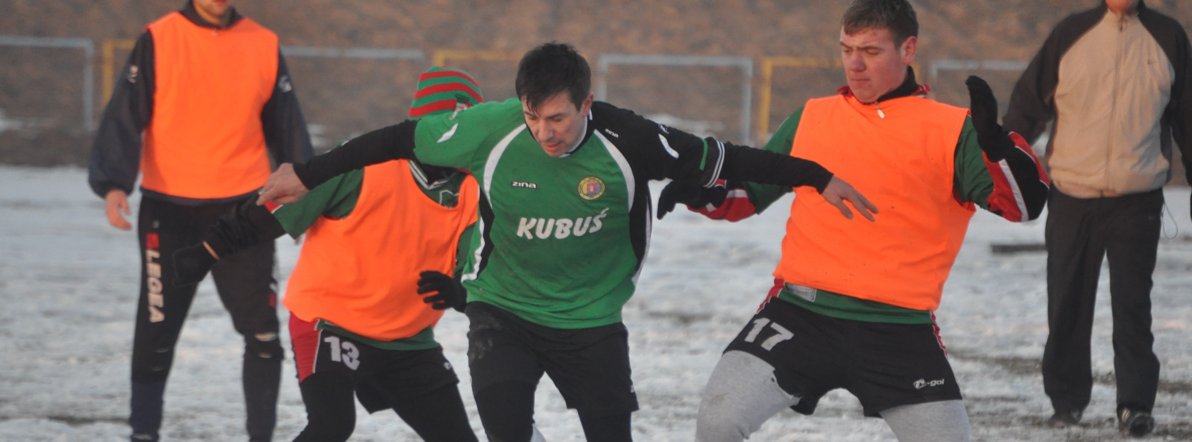 W środku tygodnia na stadionie miejskim w Żurominie rywalizowały dwa zespoły naszego powiatu. Gospodarze zawodnicy Wkry Żuromin rywalizowali z Wkrą Bieżuń. Niestety prawdziwej piłkarskiej uczcie przeszkadzało boisko. Zmrożona płyta boiska, na niej zalegał śnieg – wszystko to utrudniało piłkarzom obydwu zespołów nie tylko grę w piłkę, ale i poruszanie się. Pierwsi jednak zaatakowali żurominianie. Przejęli piłkę w środkowej strefie boiska. Rafał Kruk zagrał do Roberta Żelaznego, a ten strzelił na bramkę. Anuszewski odbił futbolówkę. Ta trafia do Bartosza Żelaznego, który staje przed pustą bramką, ale nie zdobywa gola. Jego uderzenie jest za lekkie. Piłkę z linii bramkowej wybija jeden z defensorów.