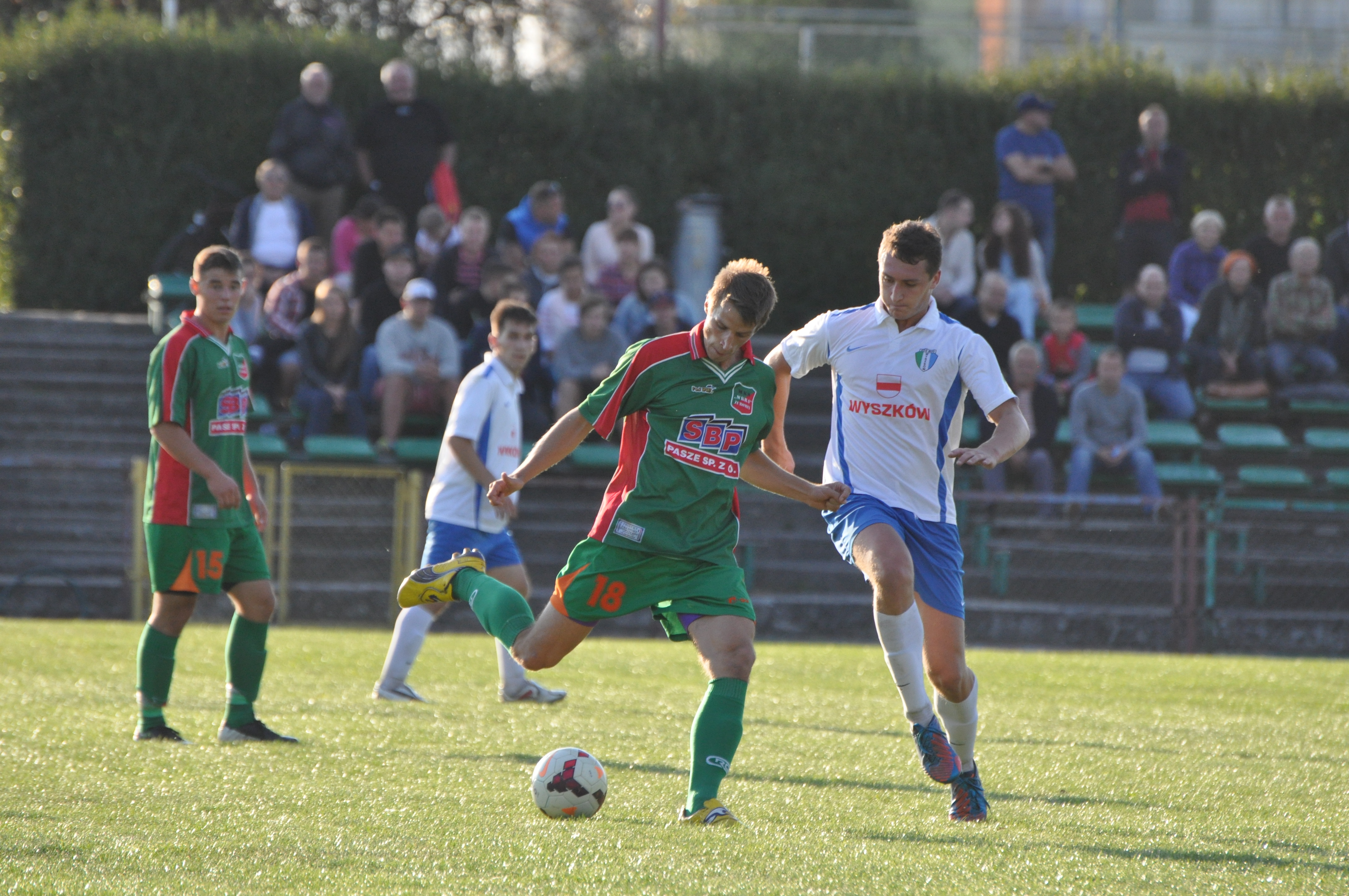 Spotkanie rozpoczęło się pod dyktando naszego zespołu i tak właśnie przebiegła pierwsza połowa tego pojedynku. Żuromińska jedenastka zdominowała boiskowe wydarzenia, a najjaśniejszą postacią w tym meczu był kapitan Wkry Bartłomiej Nowacki. To właśnie ten gracz dał najwięcej w ofensywie naszemu zespołowi. Otworzył on wynik spotkania, wykorzystując znakomite dośrodkowanie z rzutu rożnego Bartosza Narewskiego. Jeszcze przed przerwą ten sam gracz wykorzystał błąd defensywy zespołu z Tłuszcza i podwyższył wynik rywalizacji. Chwilę wcześniej mógł zapewnić swojemu zespołowi kolejnego gola, ale trafił tylko w słupek.