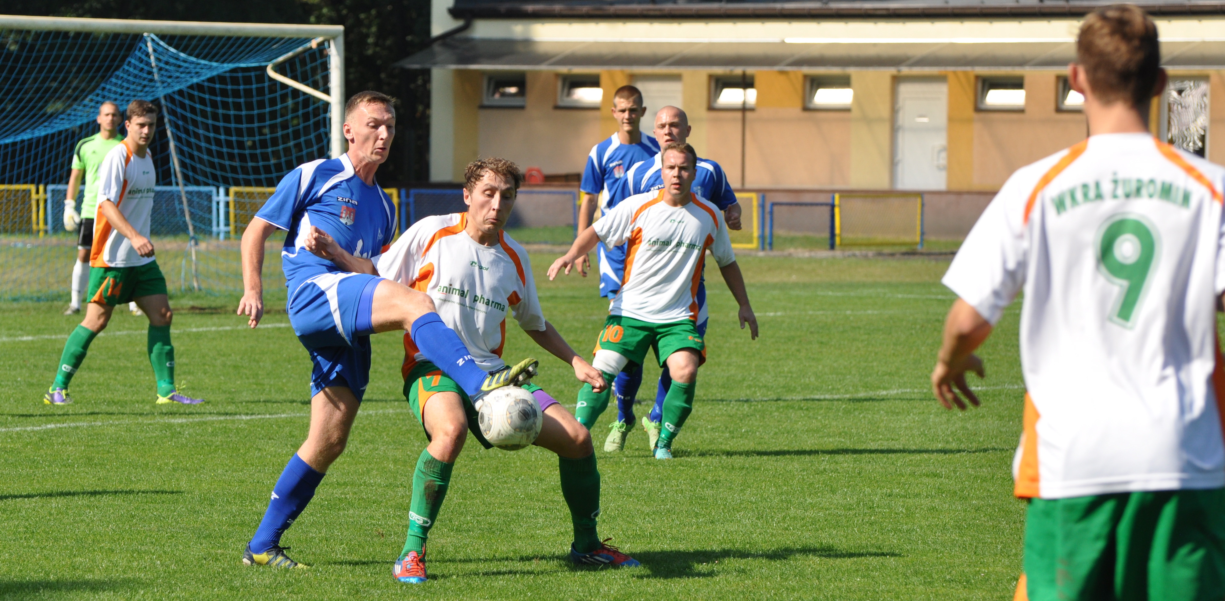 Już pierwsza akcja po zmianie stron pokazała, że żurominianie nie mają zamiaru przestać walczyć o punkty. Po dośrodkowaniu z lewej strony boiska głową uderzał Tomasz Kamiński, a jego strzał z trudem obronił bramkarz. Na tę część gry wyszedł jakby inny zespół. Zespół usposobiony bardziej ofensywnie, zespół chcący zmienić losy spotkania. W porównaniu do pierwszej połowy nasz zespół stwarzał więcej okazji strzeleckich. Bardzo dobrą okazję do zdobycia kontaktowej bramki miał Dawid Sokołowski. Siedemnastoletni zawodnik zamykał akcję na prawej stronie boiska, ale jego strzał nie sprawił żadnego problemu bramkarzowi. Niepilnowany pomocnik uderzył lekko w środek bramki. W 70 minucie meczu nieporozumienie między Laskowskim, a Izwantowskim sprawiło, że kolejna szansa na bramkę przeszła obok naszych graczy. Laskowski nie widząc nabiegającego, w lepszej pozycji Izwantowskiego, zabrał piłkę koledze, który miał dobrą okazję do uderzenie. Izwantowski z dobrej strony pokazał się w 78 minucie. Otrzymał prostopadłą piłkę od Kamińskiego, uderzył zewnętrzną częścią stopy w długi róg bramki, a piłka zatrzepotała w siatce. Niestety sędzia liniowi uniósł chorągiewkę w górę. Spalony. Gospodarze tego meczu również mieli swoje okazje, ale dobrze spisywał się w bramce Mateusz Szmyt, co najmniej raz ratując zespół przed utratą gola.