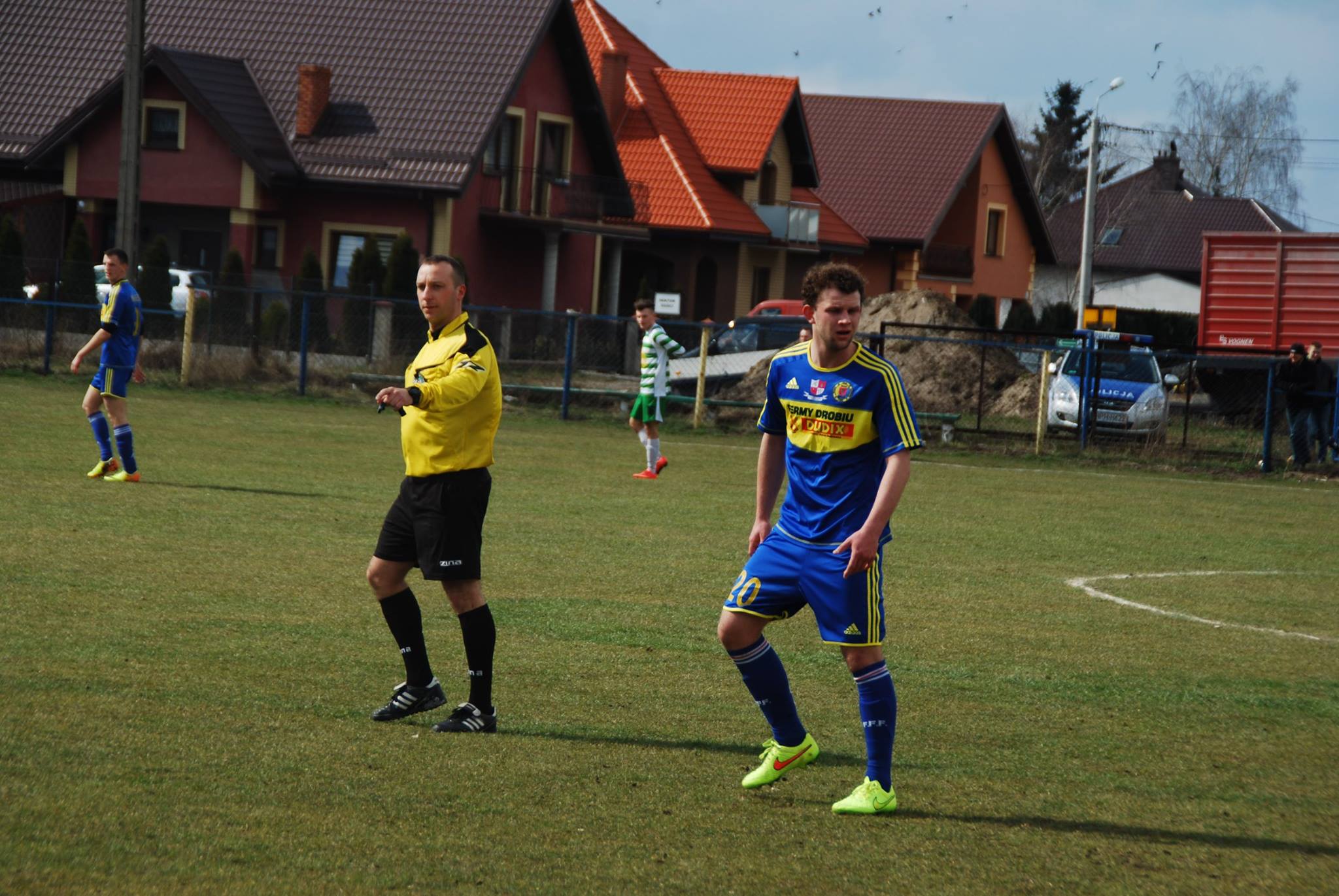 Sobotnie mecz dziewiętnastej kolejki ciechanowsko-ostrołęckiej Ligi Okręgowej nie mógł lepiej rozpocząć się dla gospodarzy. Już w drugiej minucie piłka zatrzepotała w siatce makowskiego zespołu. Autorem swojej pierwszej bramki w seniorskiej piłce był Robert Kolk, który przed tą rundą zasilił zespół. Kolk jest wychowankiem bieżuńskiej jedenastki i powrócił z warszawskiej Agrykoli. Radość zespołu trwała krótko. Zaledwie dziesięć minut później boisko z powodu czerwonej kartki opuścić musiał Michał Dzięgielewski. Wydawało się, że mogą skorzystać z tego gracze gości, ale nic bardziej mylnego. Nadal to gospodarze nadawali ton boiskowym wydarzeniom i jeszcze przed przerwą na listę strzelców wpisali się defensor Bartłomiej Żelazny oraz skrzydłowy Dariusz Petrykowski.