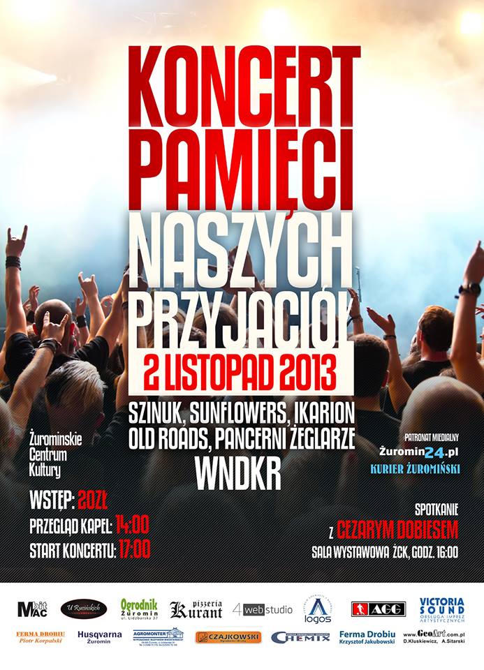 W tegorocznej edycji konkursu przeprowadzony zostanie konkurs dla zespołów muzycznych oraz koncerty główny. Przegląd zespołów konkursowych zaplanowano na godzinę 14:00. O godzinie 17:00 rozpocznie się główna część imprezy – koncert. Na pocvzątek drugiej części dla widzów zagra zwycięzca przeglądu. Od godziny 18:00 rozpocznie się główna część Koncertu Pamięci naszych Przyjaciół. Na scenie w Żuromińskim Centrum Kultury wystąpią: Szinuk, Pancerni Żeglarze, Old Roads, Ikarion, Sunflowers, WNDKR. Bilety można kupić w ŻCK. Cena 20 złotych.