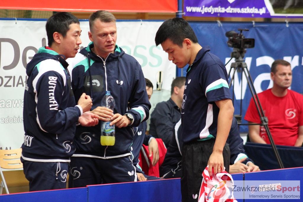 Przed rozpoczęciem meczu ciężko było wskazywać faworyta rywalizacji. Zarówno zespół z Torunia jak i Działdowa ma w swoim składzie wybitnych graczy. W ekipie z Kujaw Energa-Manekin Toruń w składzie jest m.in. złoty medalista niedawnych drużynowych mistrzostw Europy Austriak Chen Weixing. Dekorglass natomiast dysponuje składem bardzo silnym, ale nie do końca przewidywalnym. Tym razem okazało się, że w zespole Piotra Kołacińskiego znów ujrzymy Tang Penga najwyżej sklasyfikowanego zawodnika na świecie, jaki gra w Superlidze w tym sezonie. Najpierw jednak kibice emocjonowali się starciem Cazuo Matsumoto i Patryka Chojnowskiego. Mistrz paraolimpijski okazał się lepszy po pięciosetowym pojedynku. Później przy stole pojawił się Tang Peng, który gładko pokonał Konrada Kulpę. Szanse na choćby punkt dla torunian podtrzymał Chen Weixing. Austriak pokonał Jiriego Vrablika. Na tym jednak zakończyły się wszelkie radości gospodarzy. W czwartej grze wieczoru Tang Peng pewnie pokonał w trzech setach Matsumoto, zapewniając swojej drużynie komplet punktów.
