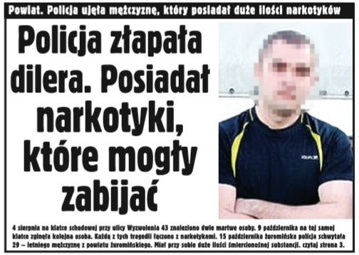 Pytaliśmy policji, czy to zatrzymanie można wiązać ze zgonami, które miały miejsce w Żurominie w ostatnim czasie. Przypomnijmy, że 4 sierpnia przy ulicy Wyzwolenia zmarło dwóch mężczyzn a 9 października w tym samym miejscu jeden mężczyzna.