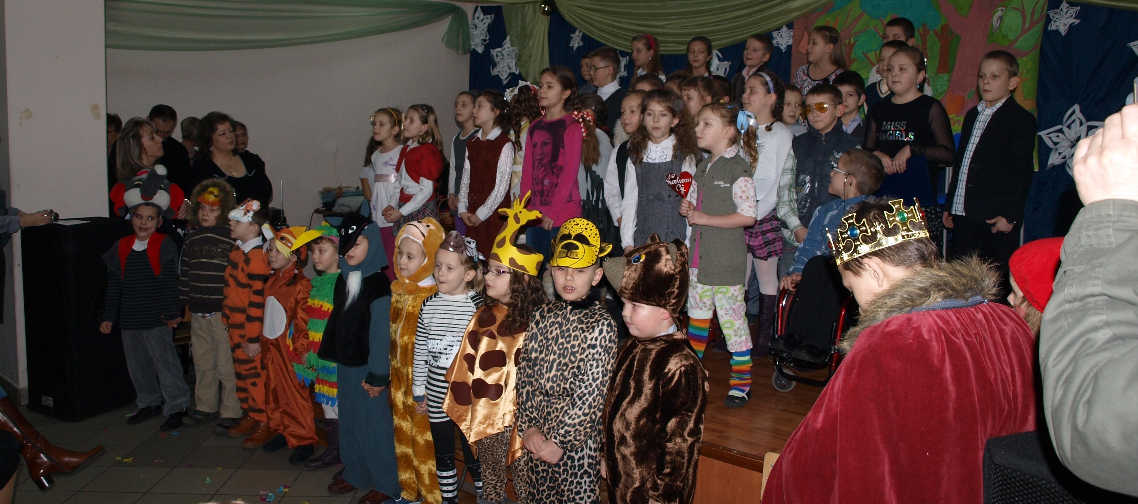 W Domu Strażaka w Poniatowie odbyła się zabawa choinkowa. Imprezę otworzyła Pani dyrektor Sylwia Antoszewska. Przywitała ona wszystkich zgromadzonych i zaprosiła do pierwszego punktu uroczystości. Były to występy dzieci ze szkoły podstawowej i niepublicznego przedszkola w Poniatowie. Licznie zgromadzona widownia, w skład której wchodziły nie tylko dzieci, ale też dorośli z Poniatowa i okolicznych miejscowości, mogła zobaczyć między innymi serię wierszy Jana Brzechwy i Juliana Tuwima, opowiadanie o porach roku, perypetie miłosne pary słowików czy też nową połączoną wersję Czerwonego Kapturka, Jasia i Małgosi i nie tylko. Aktorzy kilkakrotnie otrzymywali gromkie brawa, co niewątpliwie było zasługą pań przygotowujących dzieci, jak i samych aktorów. Przedstawienie przygotowywały: Dorota Kowalczyk, Monika Wieczorkowska, Grażyna Antosiak, Joanna Jaroszewska, Jolanta Gowin, Irena Wiźlic i Agnieszka Pawlak.