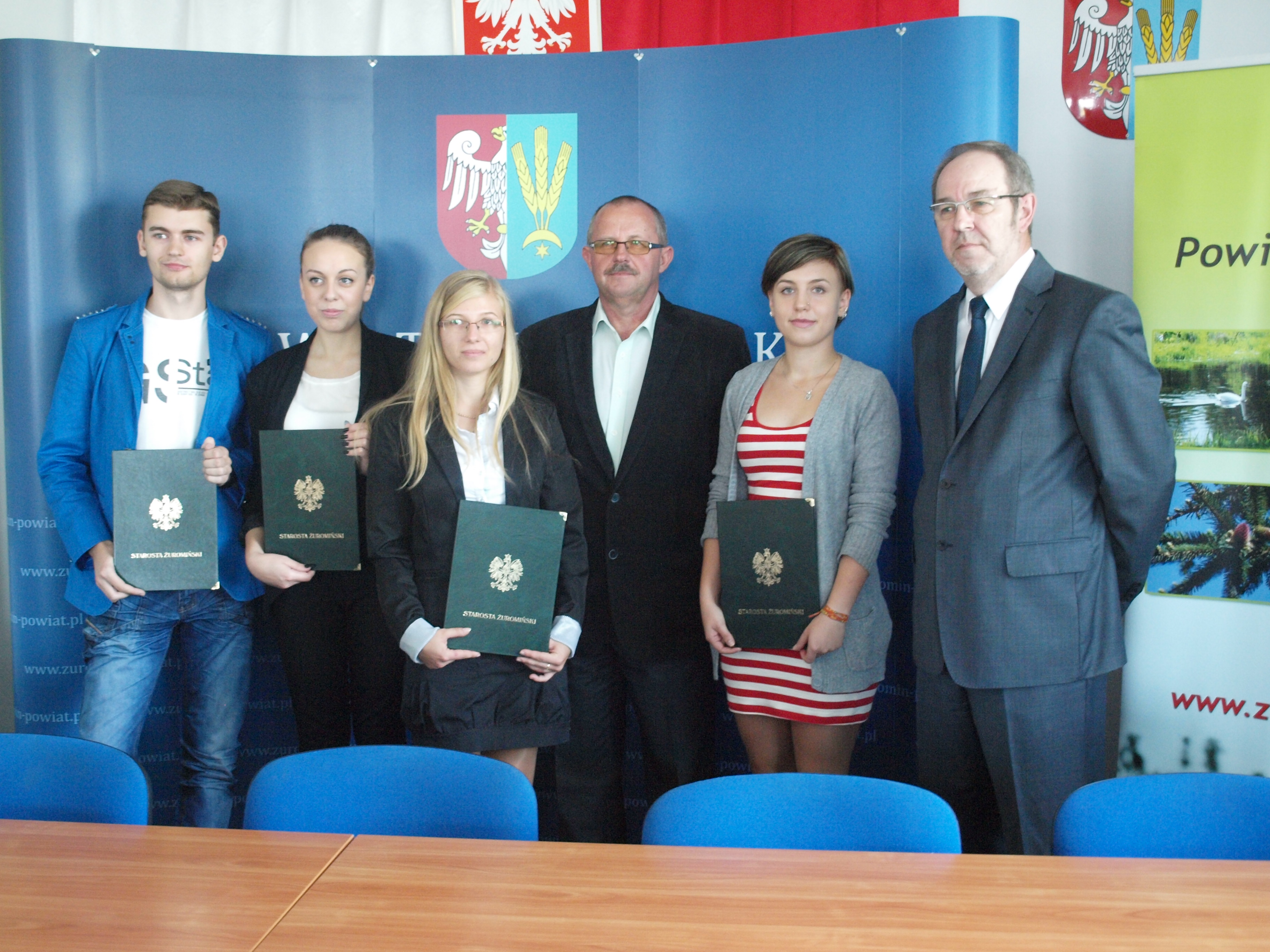 W Starostwie Powiatowym 3 września uczniowie i ich rodzice otrzymali listy gratulacyjne i nagrody za najlepsze wyniki z egzaminu maturalnego. W obecności dyrektorów szkół odebrali je z rąk Starosty Janusza Welenca i Przewodniczącego Rady Powiatu Żuromińskiego Jerzego Rzymowskiego. Najlepszymi maturzystami są: Joanna Kotarska – absolwentka Liceum Ogólnokształcącego im. Marii Dąbrowskiej w Żurominie, Oliwia Filipska – absolwentka Liceum Ogólnokształcącego im. Wł. Orkana w Bieżuniu, Łukasz Lempek – absolwent Technikum w Zespole Szkół Ponadgimnazjalnych im. Jana Pawła II w Żurominie, Karolina Puchalska – absolwentka Liceum Ogólnokształcącego w Zespole Szkół Ponadgimnazjalnych im. Batalionów Chłopskich w Zielonej, Joanna Retkowska – absolwentka Technikum w Zespole Szkół Ponadgimnazjalnych im. Batalionów Chłopskich w Zielonej. Gratulujemy!