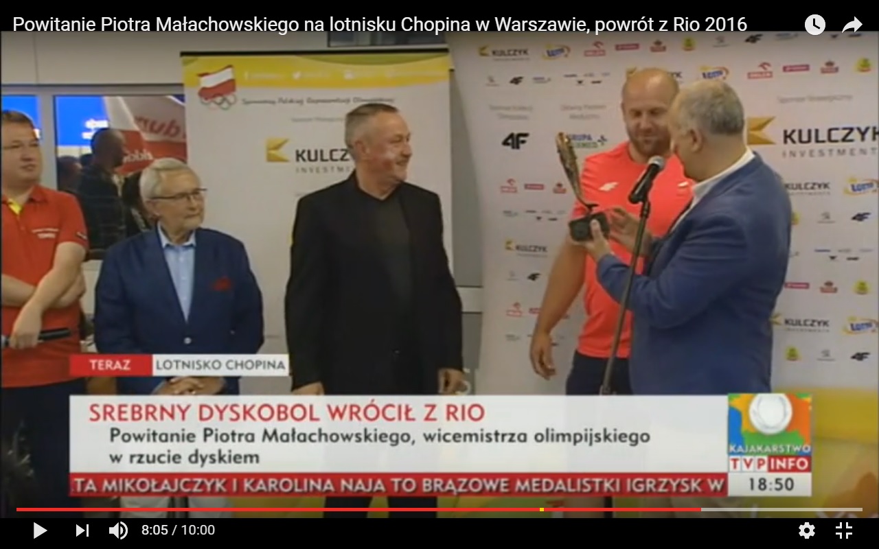 Piotr Małachowski wicemistrz olimpijski z Rio de Janeiro przyleciał do Polski 16 sierpnia. Na lotnisku witała go spora grupa kibiców. Najgłośniejsi byli ci z Bieżunia.