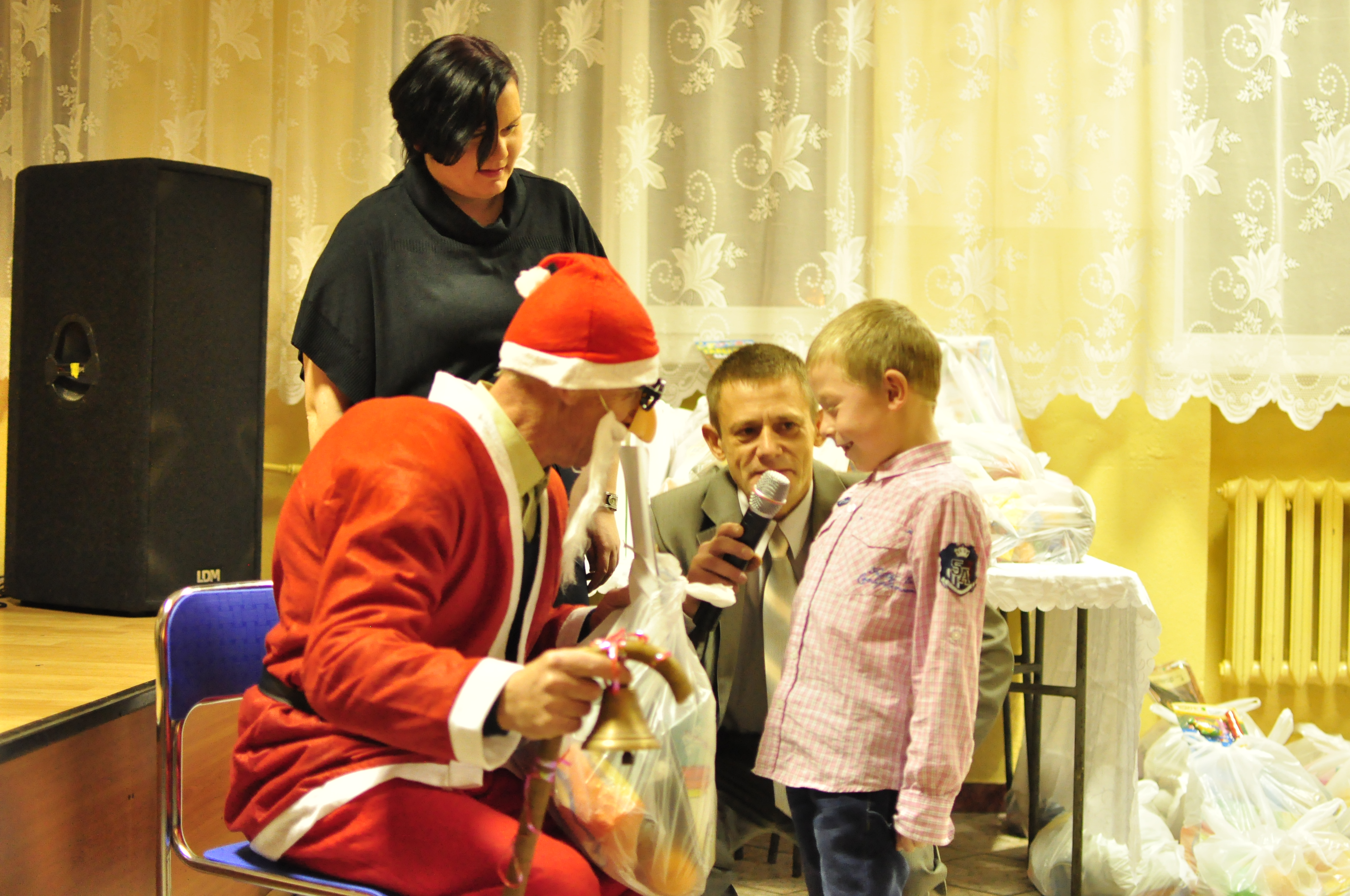 Po chwili do sali wszedł niecierpliwie wyczekiwany Święty Mikołaj. Co prawda jak na Mikołaja był strasznie wychudzony, ale prezenty miał ciężkie i duże.