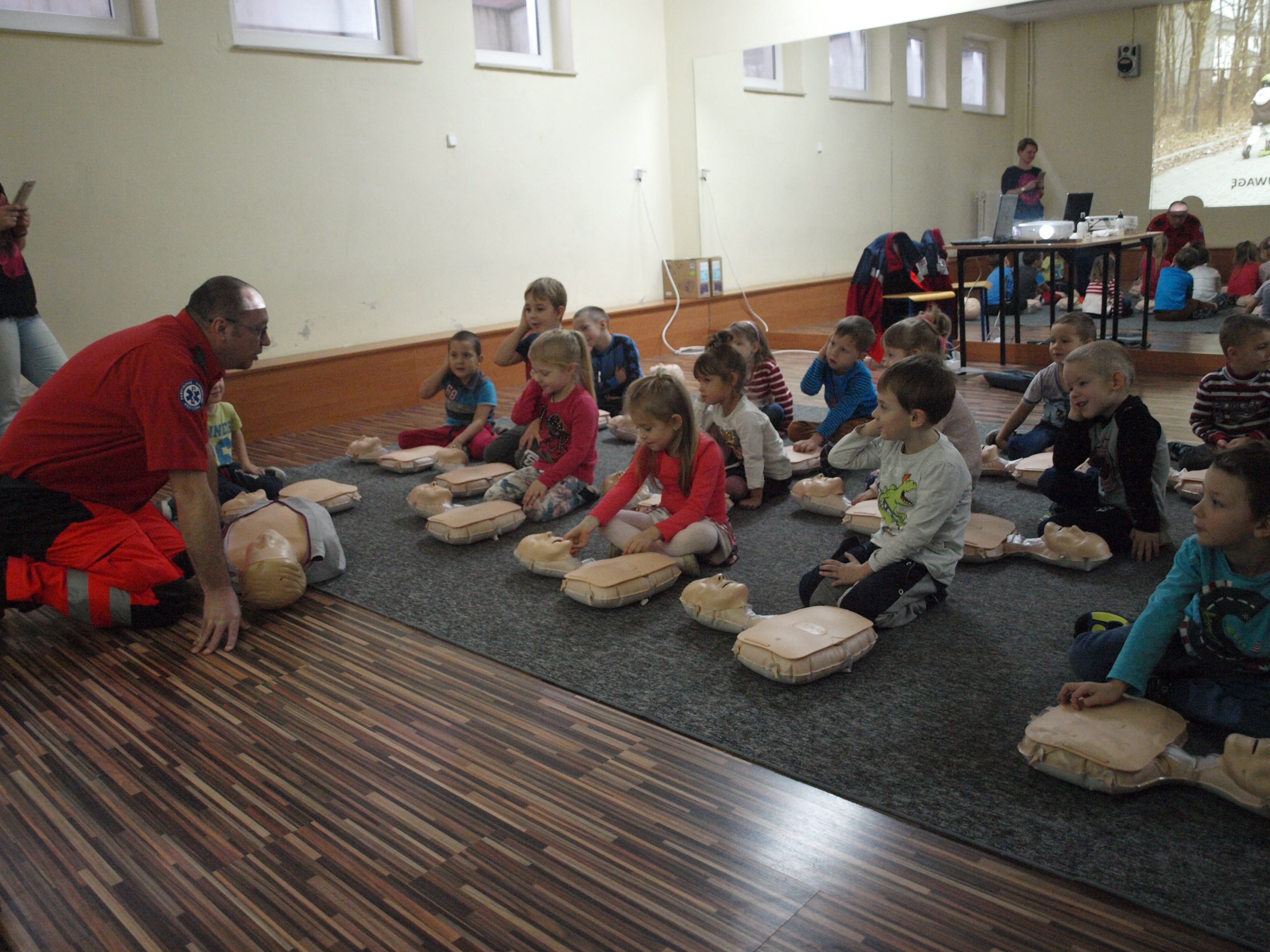 Taka lekcja była realizowana w ramach szkolnego projektu, który polega na spotkaniach przedszkolaków z przedstawicielami różnych zawodów. Tym razem przedszkolaki spotkały się z lekarzem medycyny ratunkowej Konradem Matyją z lotniczego pogotowia ratunkowego. W czasie spotkania dzieci dowiedziały się w jaki sposób należy wzywać pierwszą pomoc, jak dbać o swoje bezpieczeństwo i w jaki sposób udzielać pierwszej pomocy. Dzieci aktywnie brały udział w zajęciach.