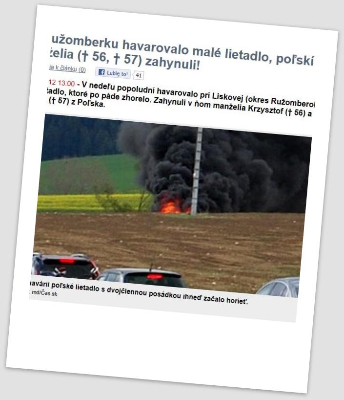 Awionetka dwójki lidzbarczan wystartowała z lotniska w Rużomberoku około godziny 12:30. Tuż po starcie ten jednosilnikowy samolot wpadł w korkociąg, spadł na ziemię i stanął w płomieniach. Dwójka lidzbarczan 57-letnia Agnieszka Przyborowska i 58-letni Krzysztof Przyborowski zginęli na miejscu.