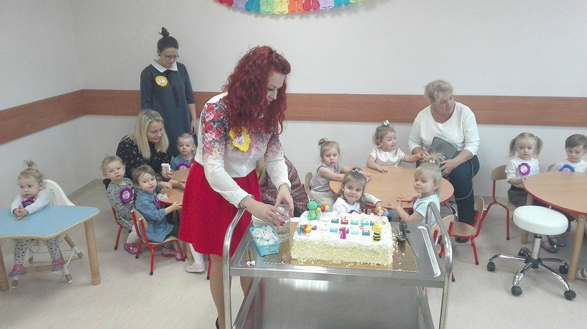 W poniedziałek wejście do żuromińskiego żłobka było ustrojone kolorowymi balonami. W środku odświętnie ubrane maluchy z niecierpliwością czekały na zaproszonych gości. Na pierwszych urodzinach Miejsko-Gminnego Żłobka w Żurominie nie mogło zabraknąć: burmistrz Anety Goliat, kierownik Wydziału Edukacji Bożeny Fijałkowskiej, byłej dyrektor placówki Marzeny Kąpińskiej oraz rodziców. Gości powitała dyrektor Kinga Tybulska. – Na dzień dzisiejszy mamy 25 dzieci, które są podzielone w dwóch grupach: „Pszczółki” i „Żabki” – mówiła dyrektor placówki. – Nasza praca jest trudna, ale za to bardzo wdzięczna i miła – dodaje Kinga Tybulska. Następnie kilka słów dodała burmistrz Aneta Goliat, wspomniała o chęci rozbudowy placówki. Dla podopiecznych żuromińskiego żłobka burmistrz Gminy i Miasta Żuromin miała przygotowane słodkie niespodzianki. – Z dumą patrzę na rozwój tego miejsca… – skwitowała Marzena Kąpińska, była dyrektor placówki, która od września jest dyrektorem Szkoły Podstawowej w Chamsku.